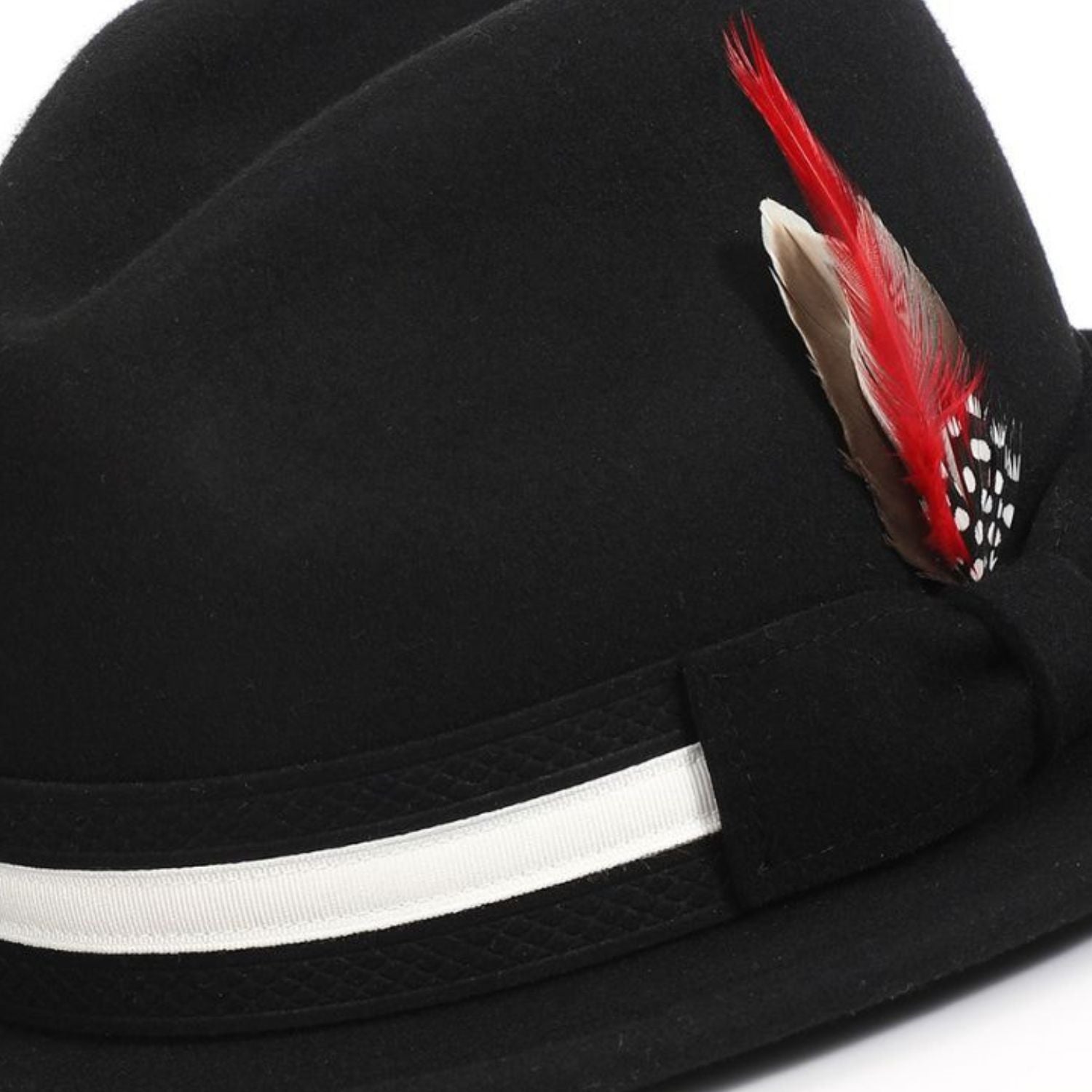 Corvus Collection: Montique Black & White Felt Fedora with Grey Band and Feather