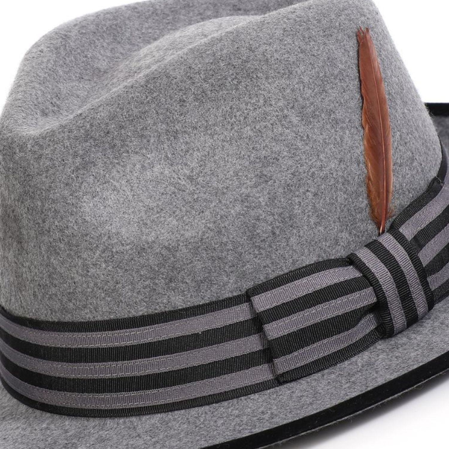 Halcyon Collection: Montique Grey Wool Felt Fedora with Striped Ribbon Band
