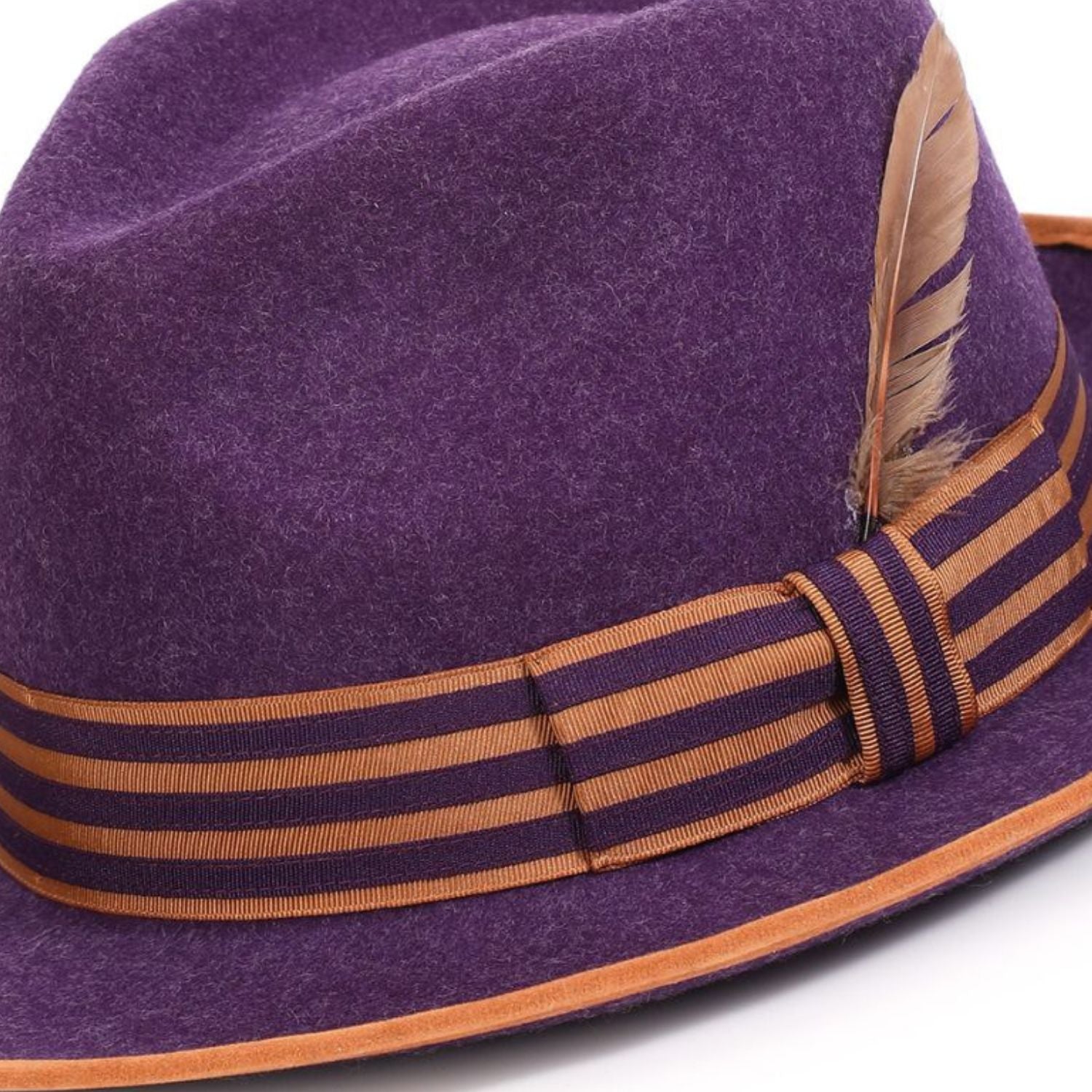 Halcyon Collection: Montique Grape Wool Felt Fedora with Striped Ribbon Band