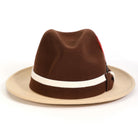 Corvus Collection: Montique Brown & Beige Felt Fedora with White Band and Feather