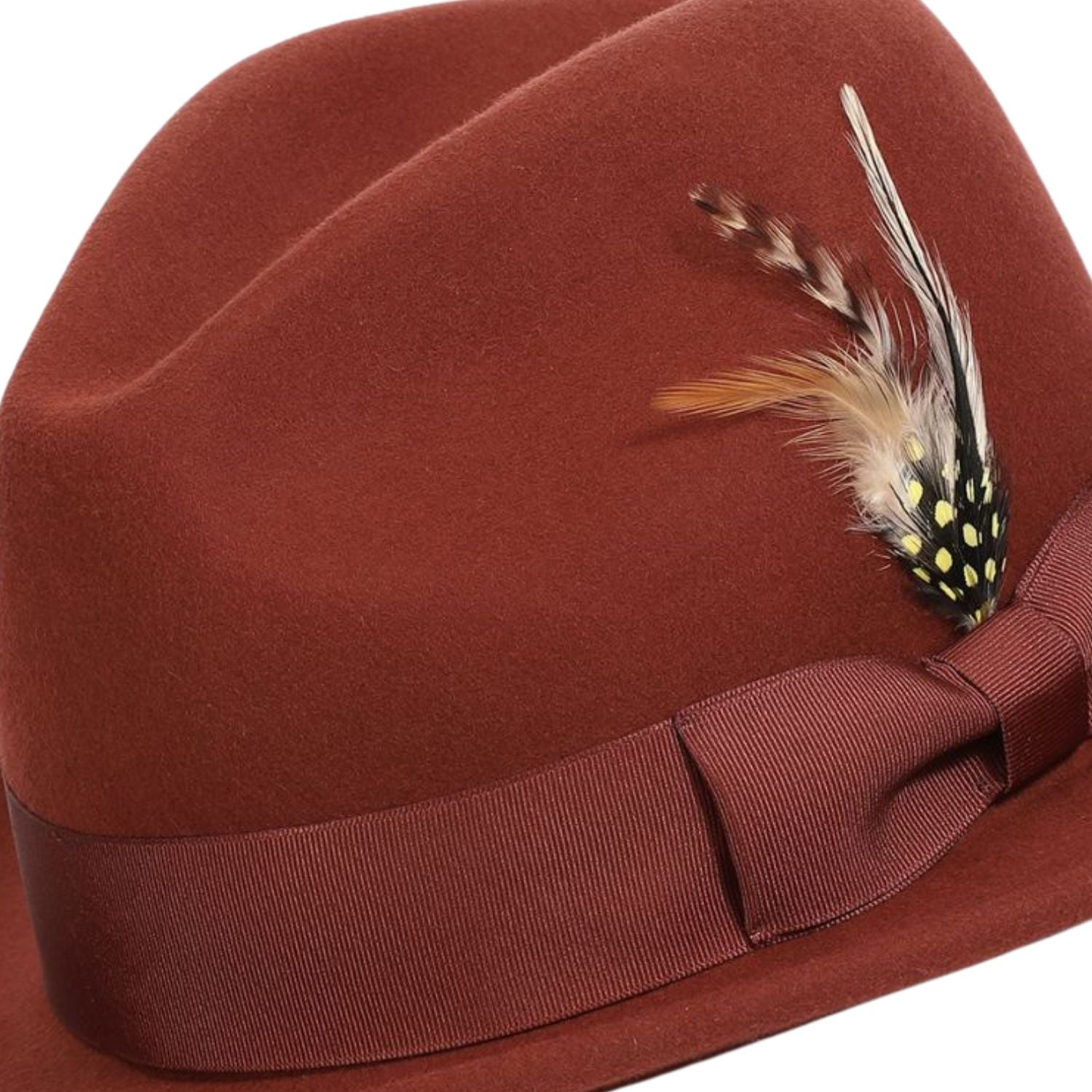 Manta Collection: Montique Men's Rust Fedora Snap Brim Soft Fine Felt Pinch Hat