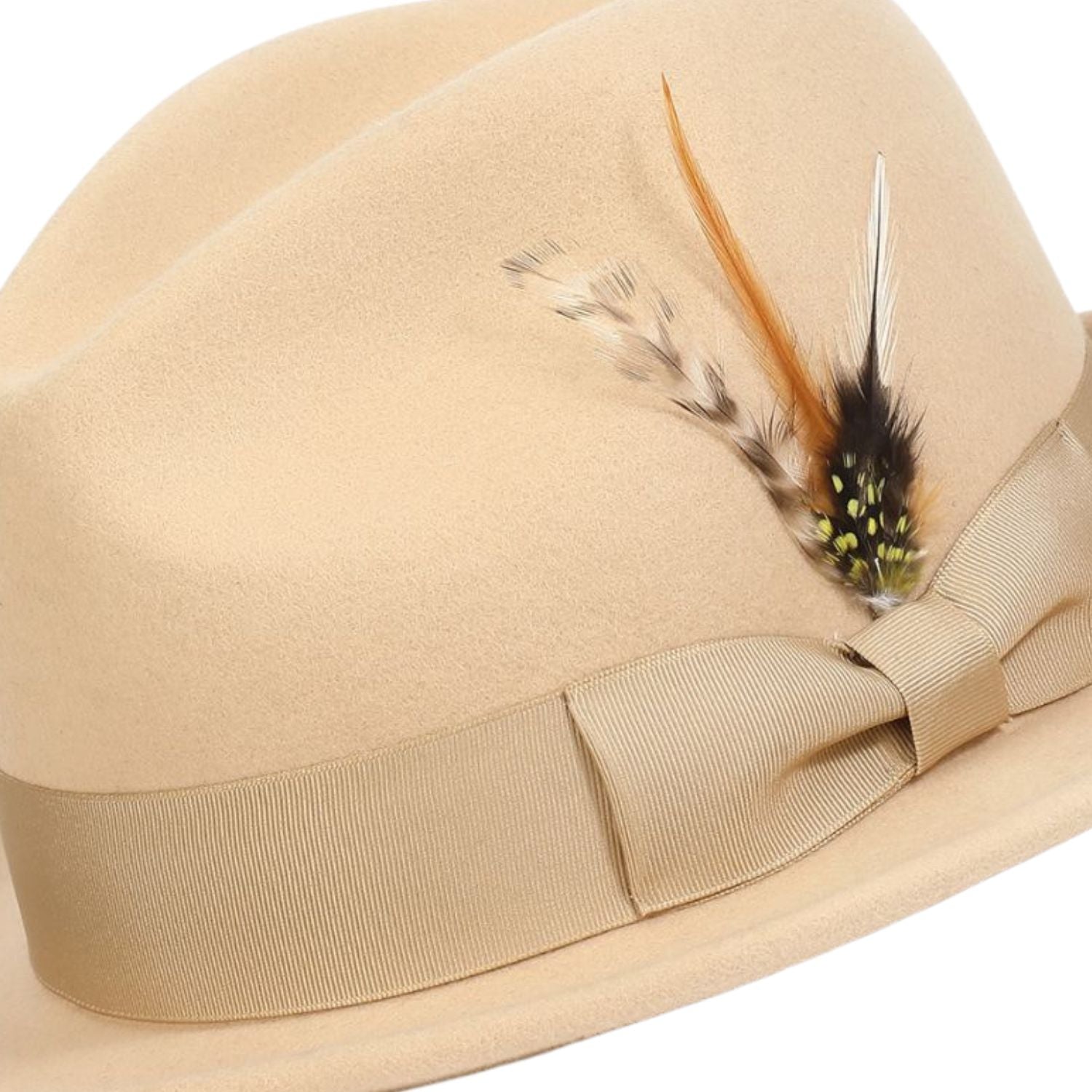 Prestique Collection: Men's Tan Soft Rabbit Wool Snap Brim Pork Pie Teardrop Dent Hat