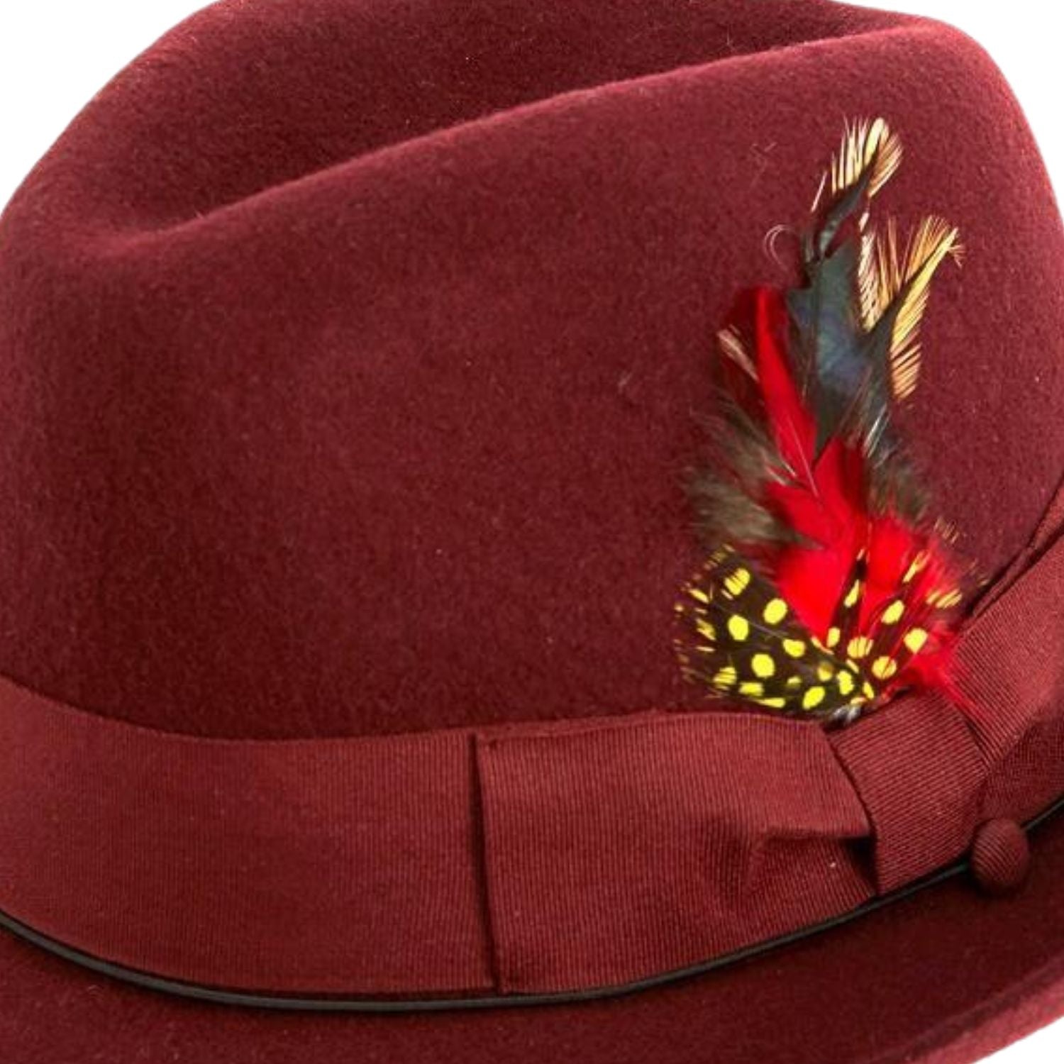 Manta Collection: Montique Men's Wine Fedora Snap Brim Soft Fine Felt Pinch Hat