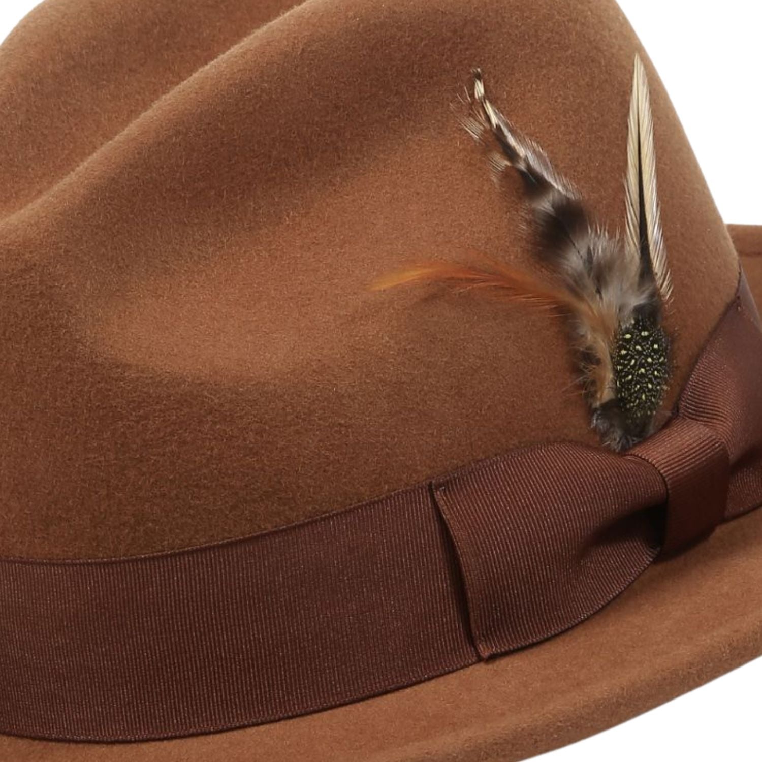 Teravine Collection: Montique Cognac Felt Fedora with Patterned Bow and Feather