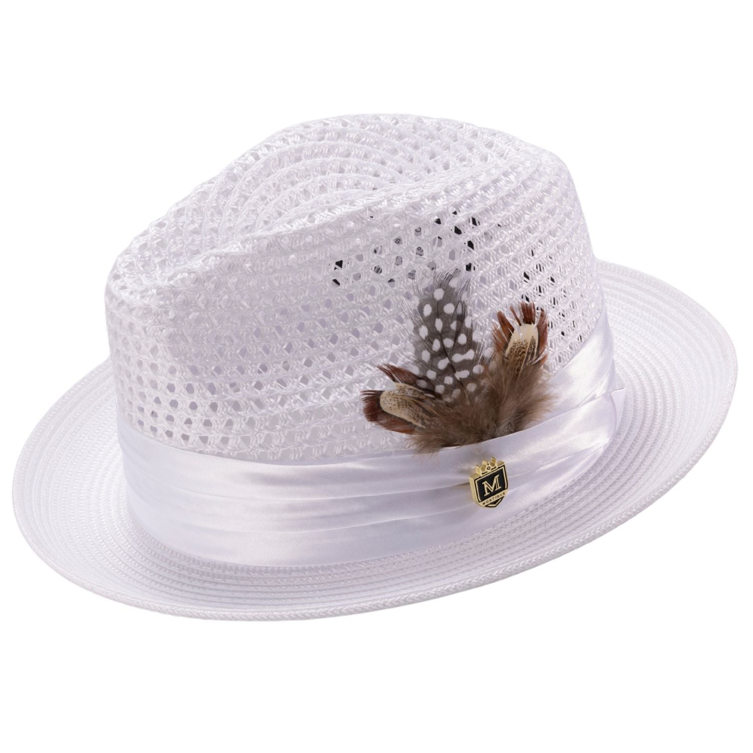 The Glossaric Collection is all about bold style and effortless confidence for the summer. These solid color pinch braided fedoras bring a daring touch to warm-weather fashion with their lightweight polyester blend, airy crown for breathability, and sleek matching satin ribbon. Designed for both comfort and statement-making, each fedora is accented with a feather detail and Montique pin, elevating your summer look with a touch of refinement. The 2" brim offers just the right amount of shade, making it a go-to choice for sunny days.