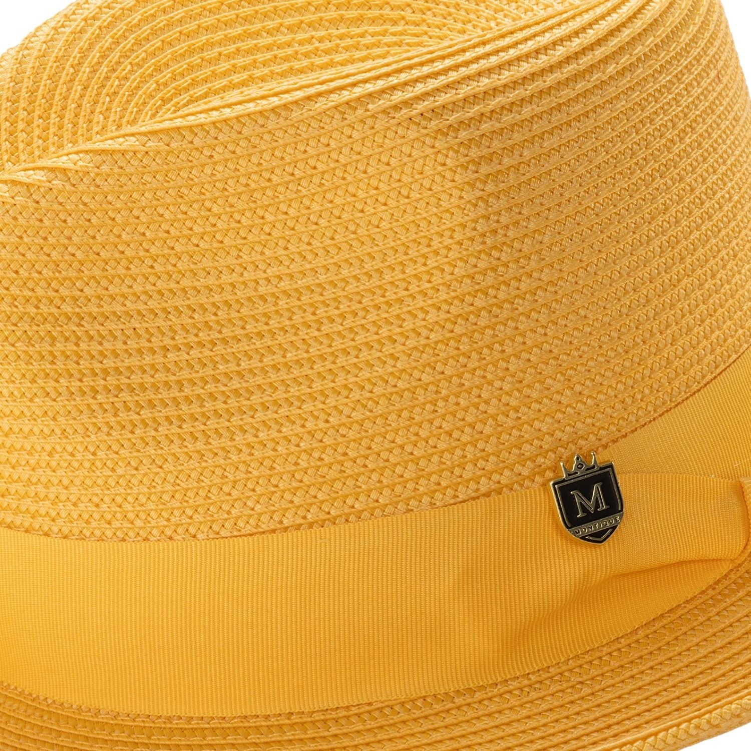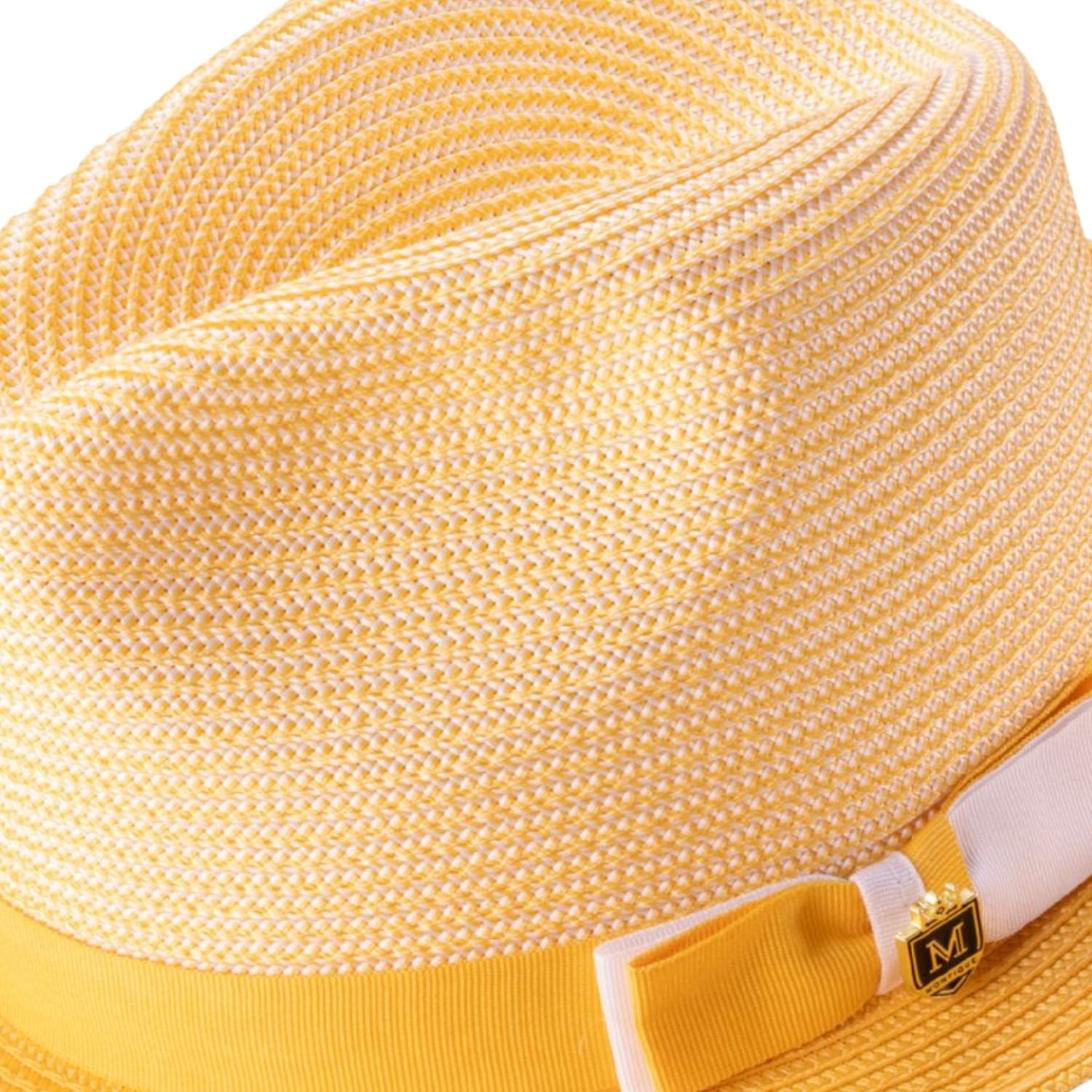 Rubique Collection: Montique Men's Braided Two Tone Stingy Brim Pinch Fedora Hat in Gold