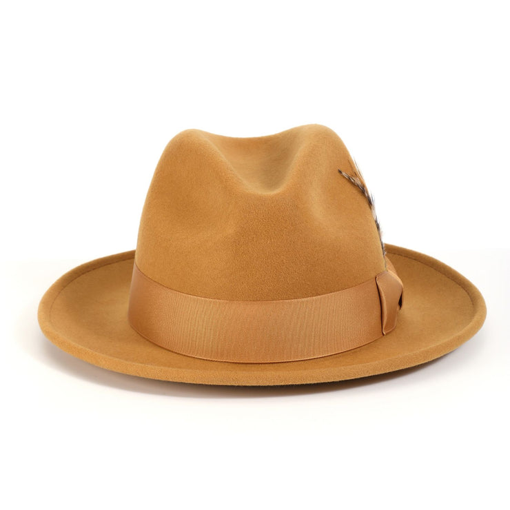 Twilique Collection: Montique Gold Lightfelt 2 ½" Wide Brim Wool Felt Pinch Hat