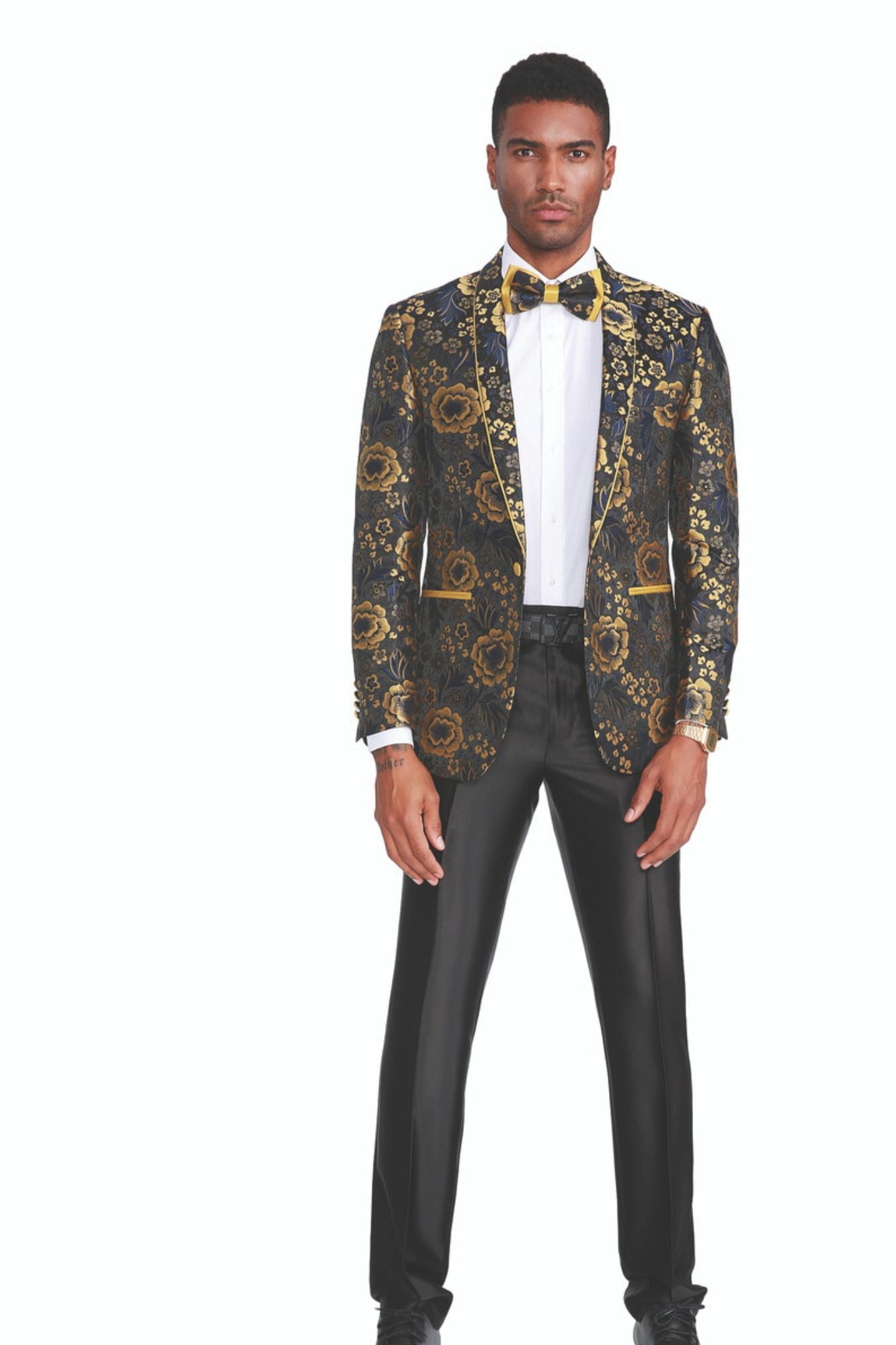 Brillante Collection: Men's Floral Pattern Blazer With Interior Pic Stitching in Gold