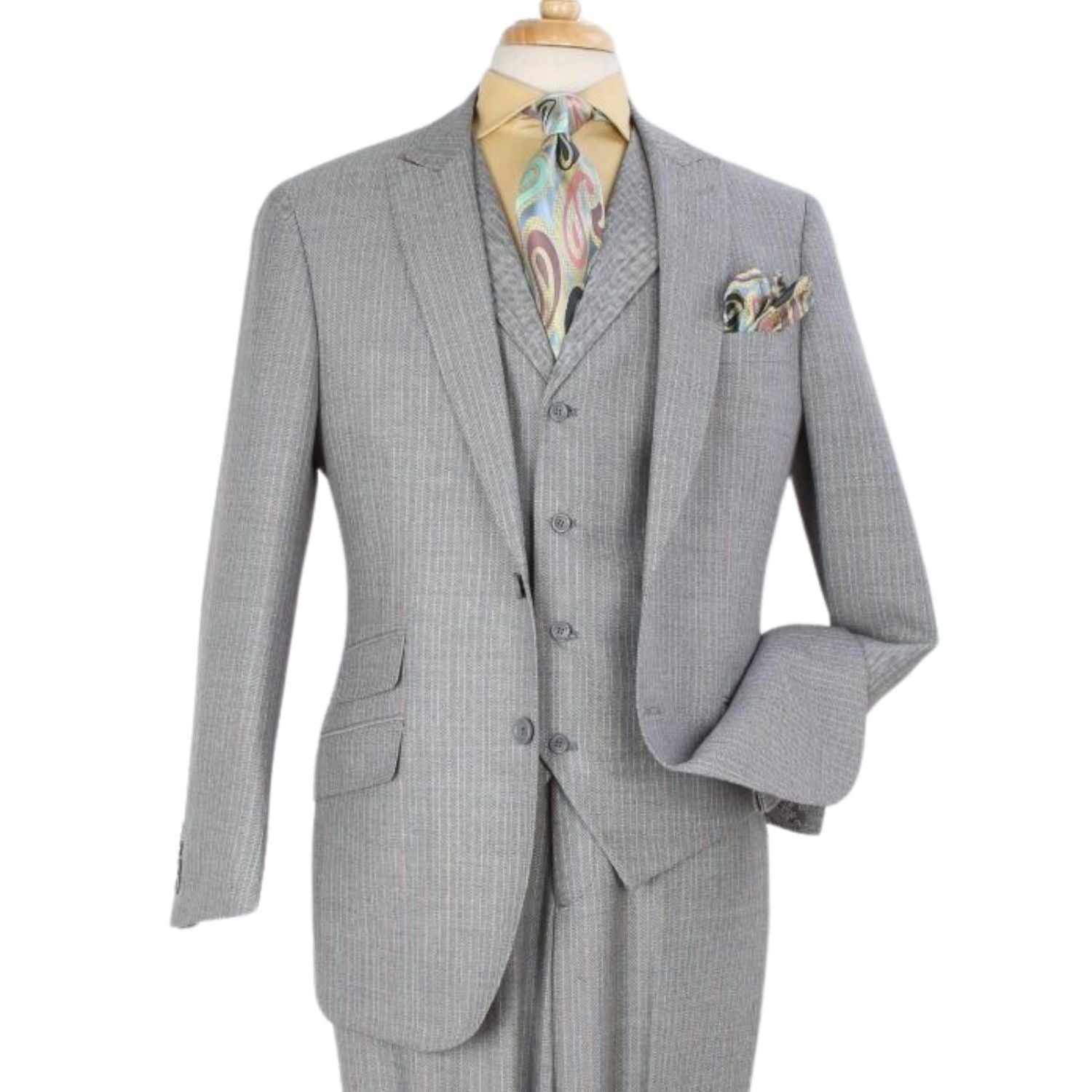 Zeus Zenith Collection: Grey 3 Piece Tone-on-Tone Pinstriped Single Breasted Regular Fit Suit