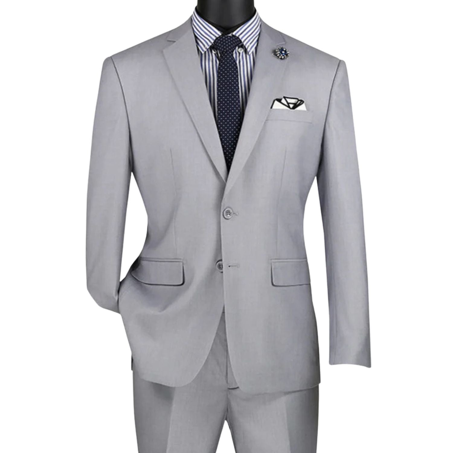 Vintagevo Collection: Light Grey 2 Piece Solid Color Single Breasted Slim Fit Suit