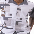 Montique Grey Geometric Print Walking Suit 2 Piece Short Pants Set 72313