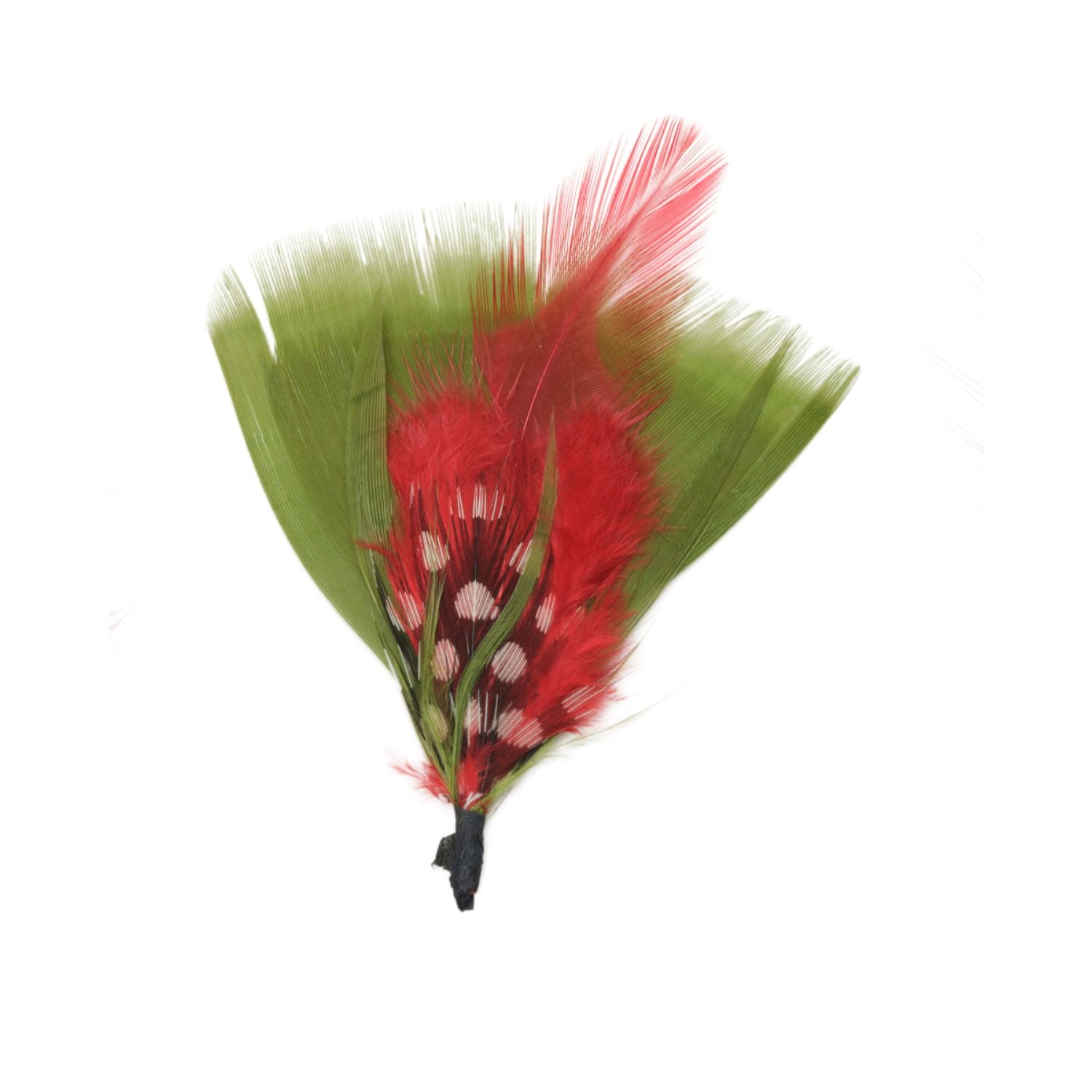 Introducing the vibrant Feather from Suits & More — a vibrant and dynamic addition to our exclusive hat accessory line. With its bold red tones and striking patterns, this feather brings an element of tribal elegance to any ensemble.