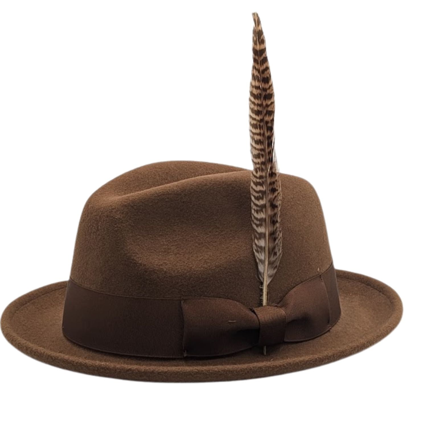 Introducing the "Whispering Winds" Feather from Suits & More, designed to add an air of sophistication and natural allure to your attire. This feather features a beautifully striped feather, characterized by its intricate patterns and soft earthy tones. It's an elegant choice for those who wish to bring a bit of wildlife charm to their fashion ensemble.