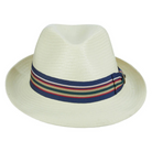 Calistoga Collection: Scala Ivory 2-Inch Brim Toyo Fedora with Striped Ribbon Band
