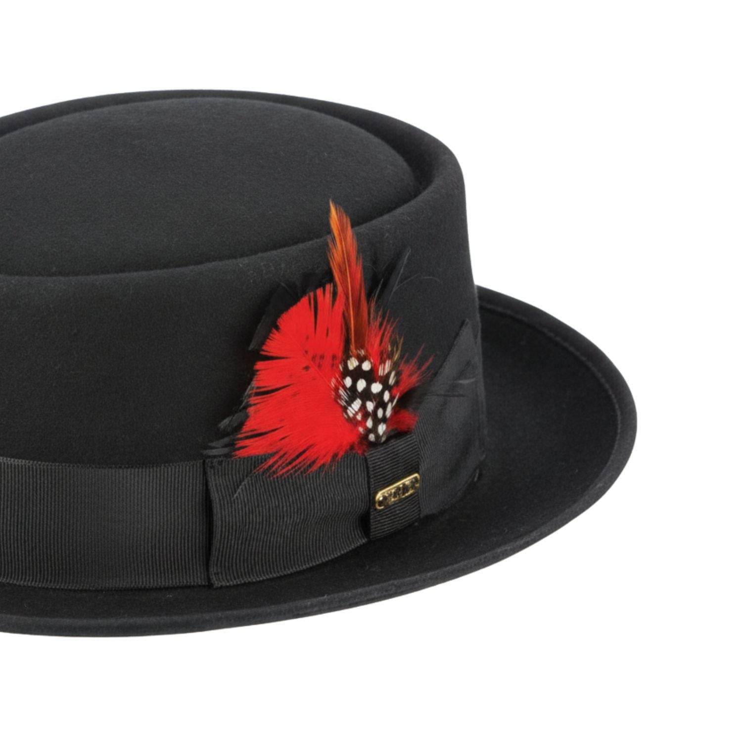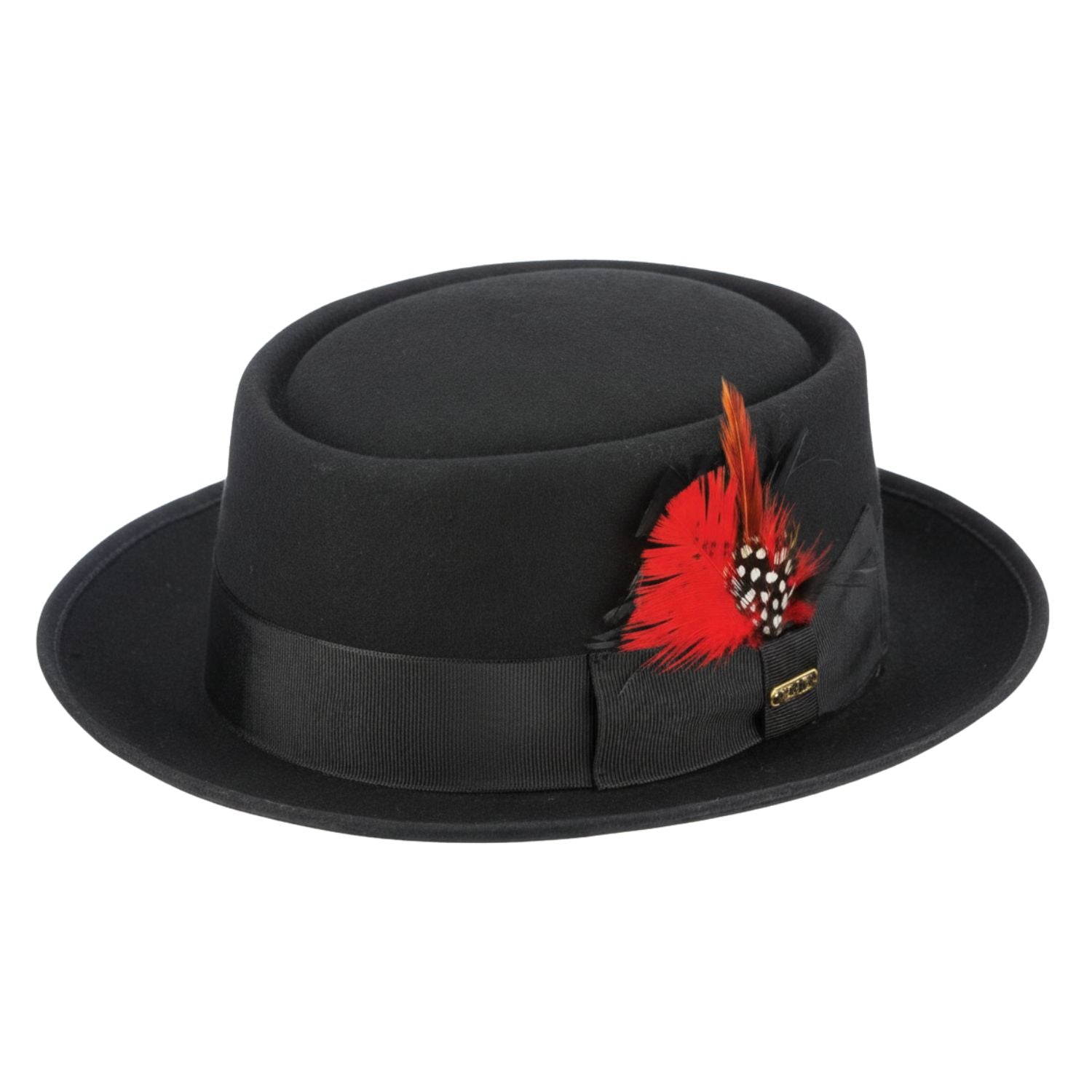 Hayworth Collection: Scala Black Structured Wool Felt Porkpie with 2” Bound Brim