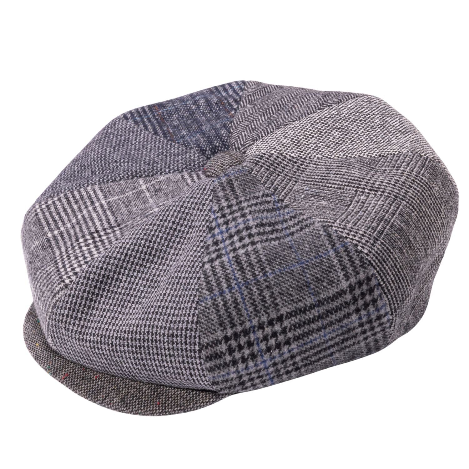 Clervaux Collection: Montique Men’s Patchwork Grey Gatsby Cap