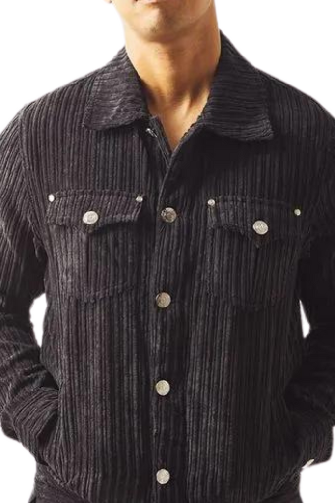 Merak Collection: Stacy Adams Black Knit Buttoned Jacket with Contrast Stitching
