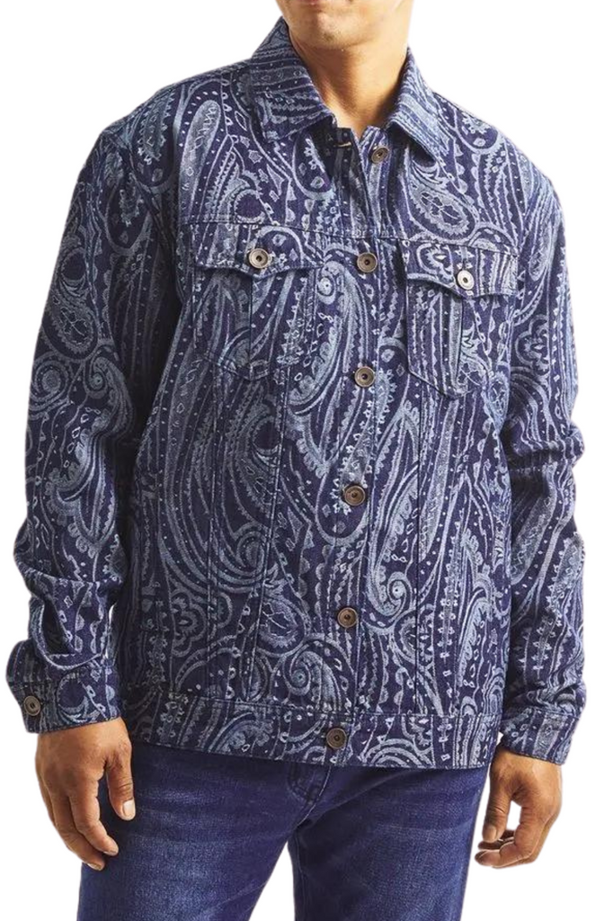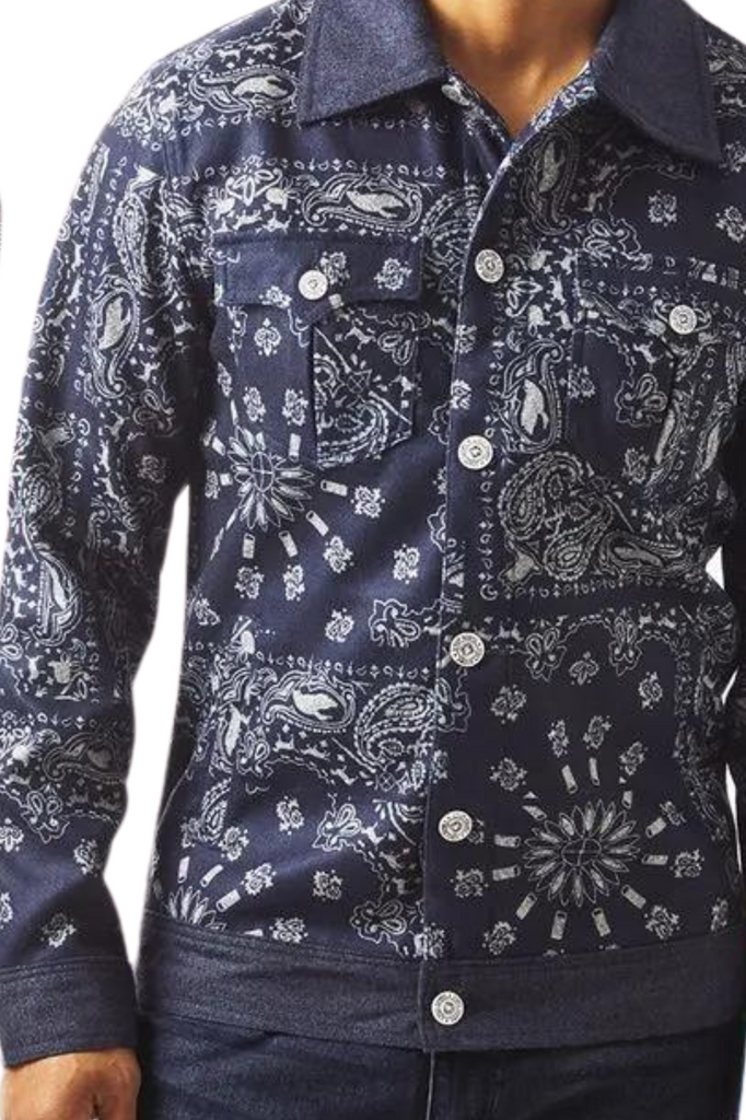 Men's Fancy Jacquard Denim Full Cut Jacket In Navy