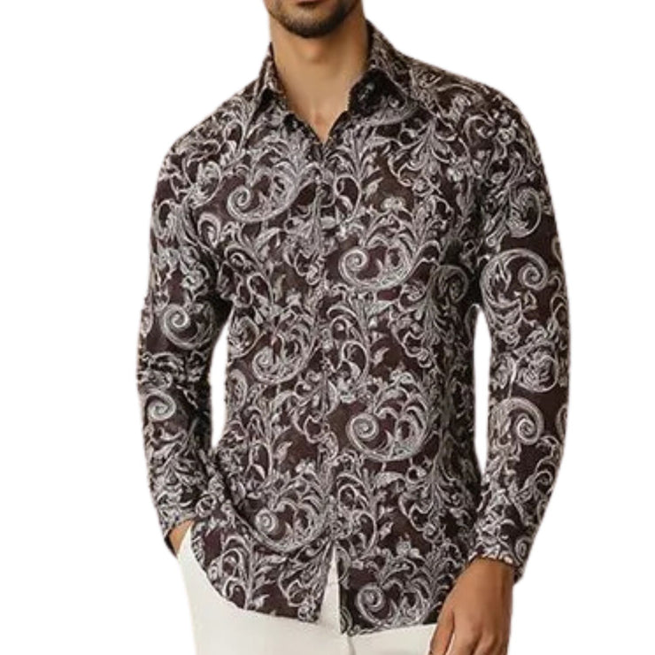 Cygnus Collection: Stacy Adams Plum Scroll Print Long Sleeve Shirt