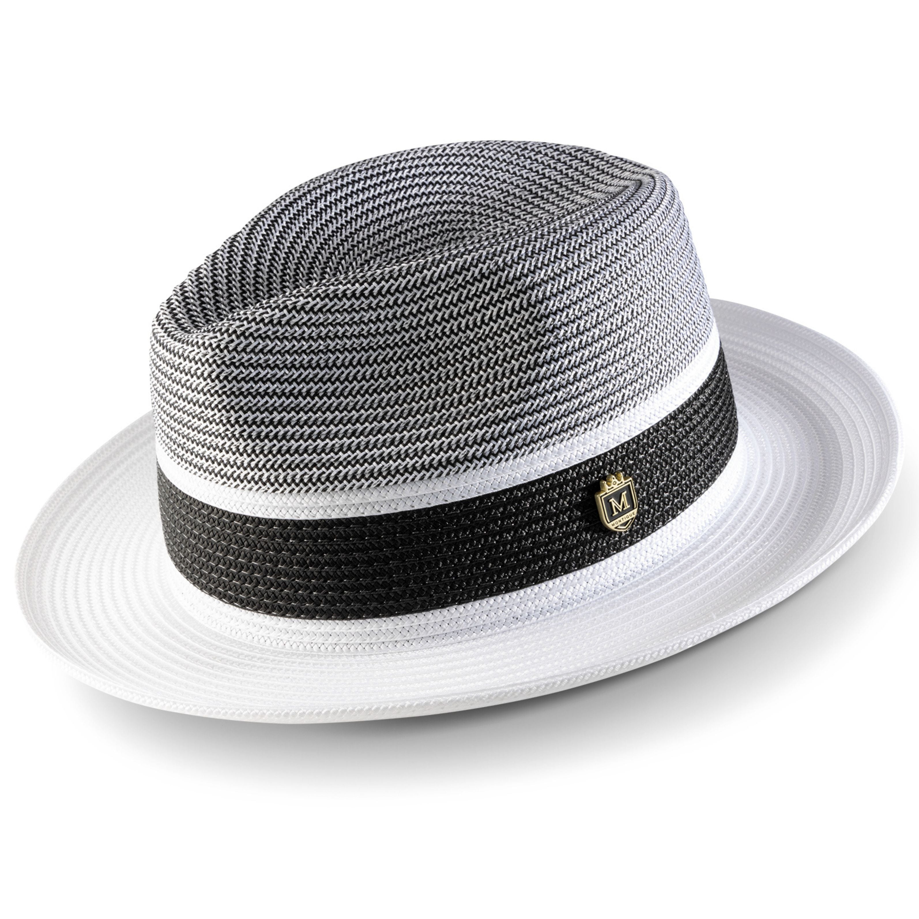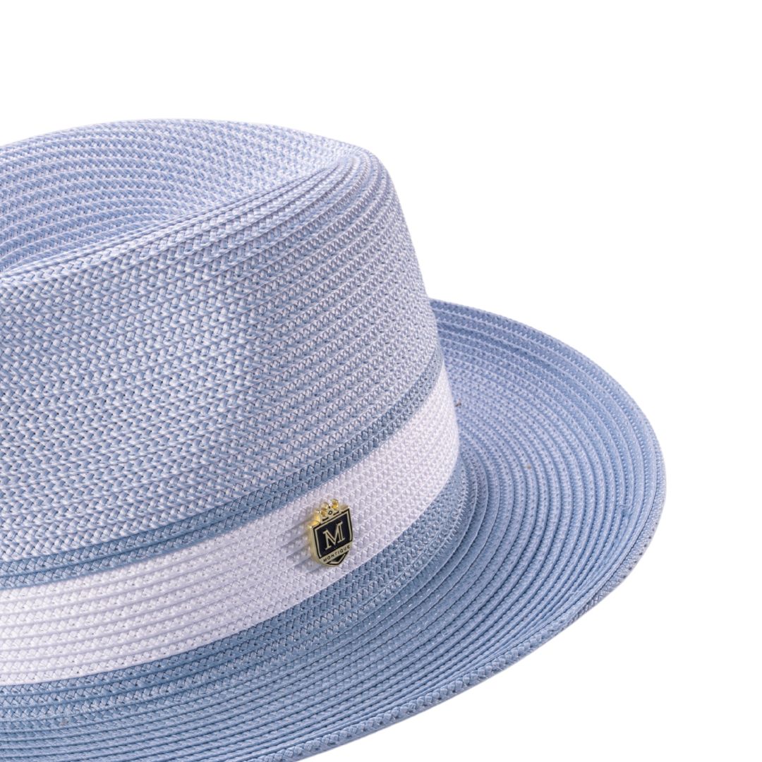 The Lorde Collection embodies sophisticated style with a bold two-tone design, offering a wide-brim pinch crown straw fedora that blends fashion and function. Crafted from a durable polyester blend, these fedoras provide lightweight comfort with an unlined interior for breathability. The 2 1/2" wide brim ensures added sun protection, making it an ideal choice for warm-weather outings or dressy occasions. Finished with a signature Montique pin, the Lorde Collection brings timeless elegance to your wardrobe.