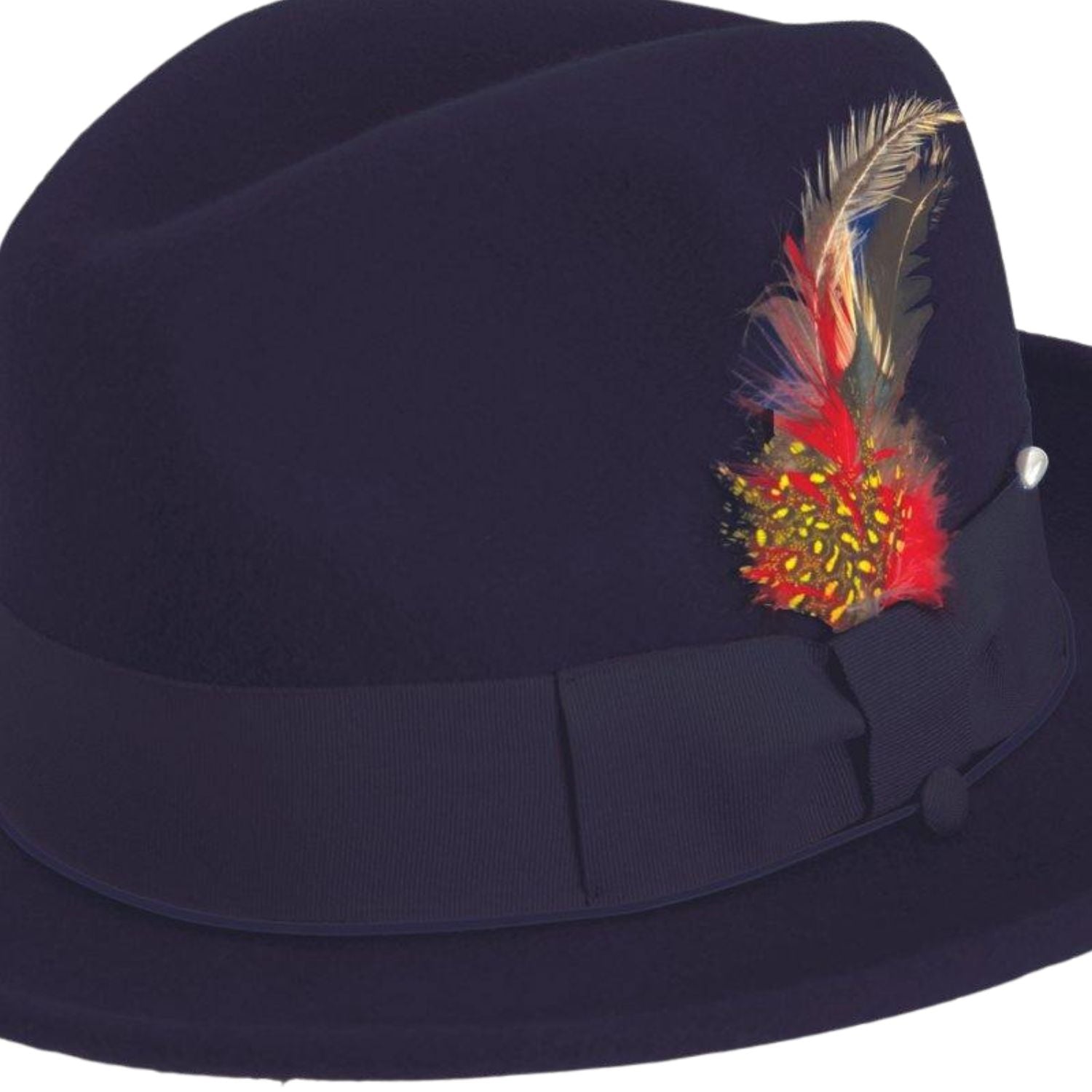 Groovify Collection: Montique Navy 2 3/4" Brim Red Bottom Wool Felt Dress Hat