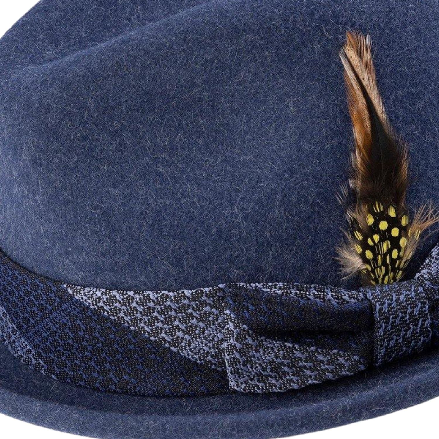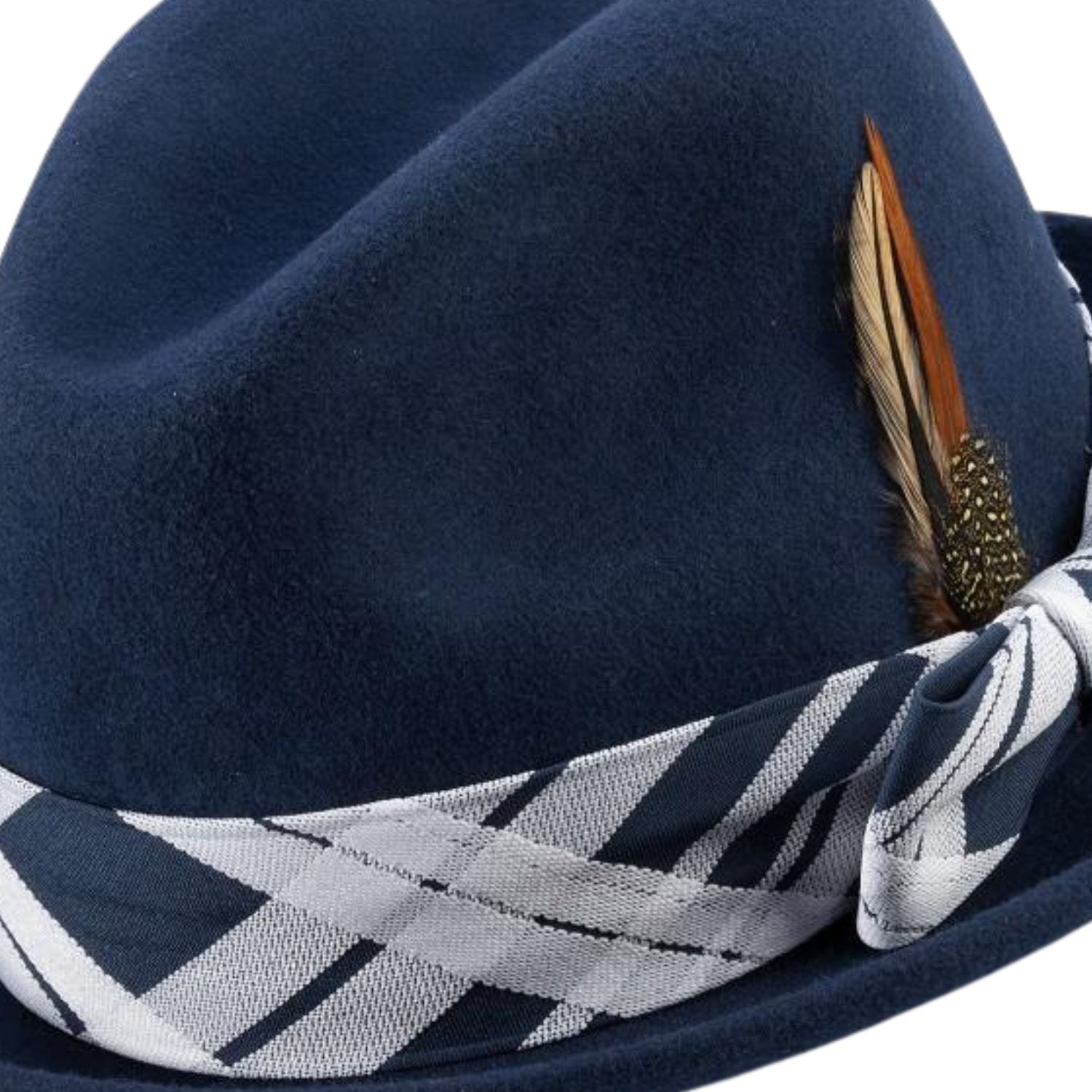 Jazzique Collection: Men's Braided Two Tone Stingy Brim Pinch Fedora Hat in Navy