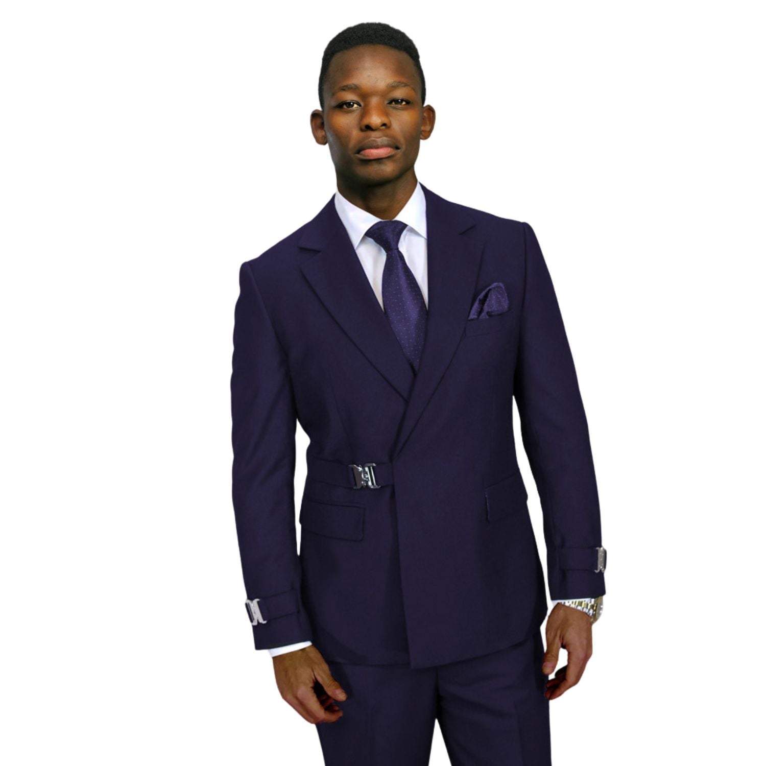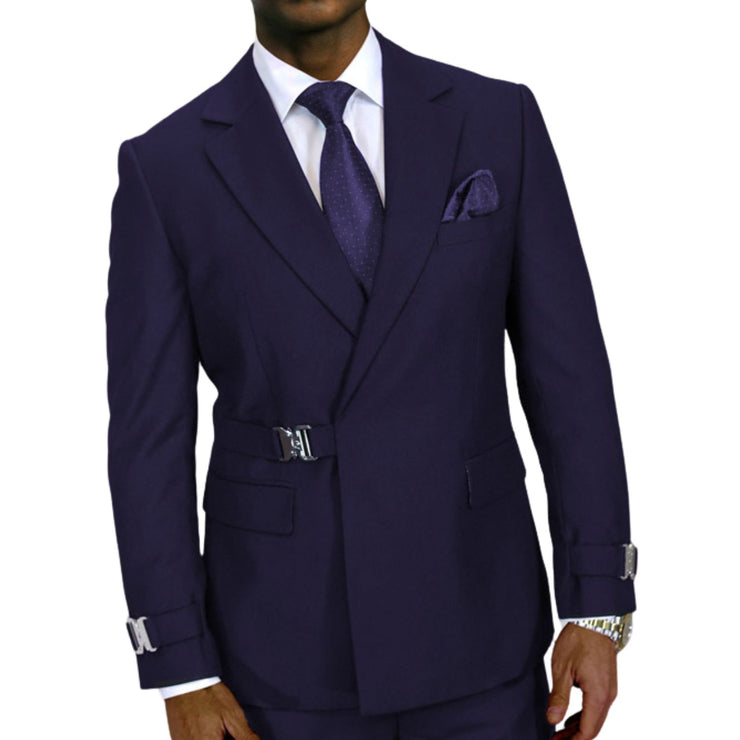 Aurelian Crest Collection: 2PC Navy Modern Fit Buckle Suit