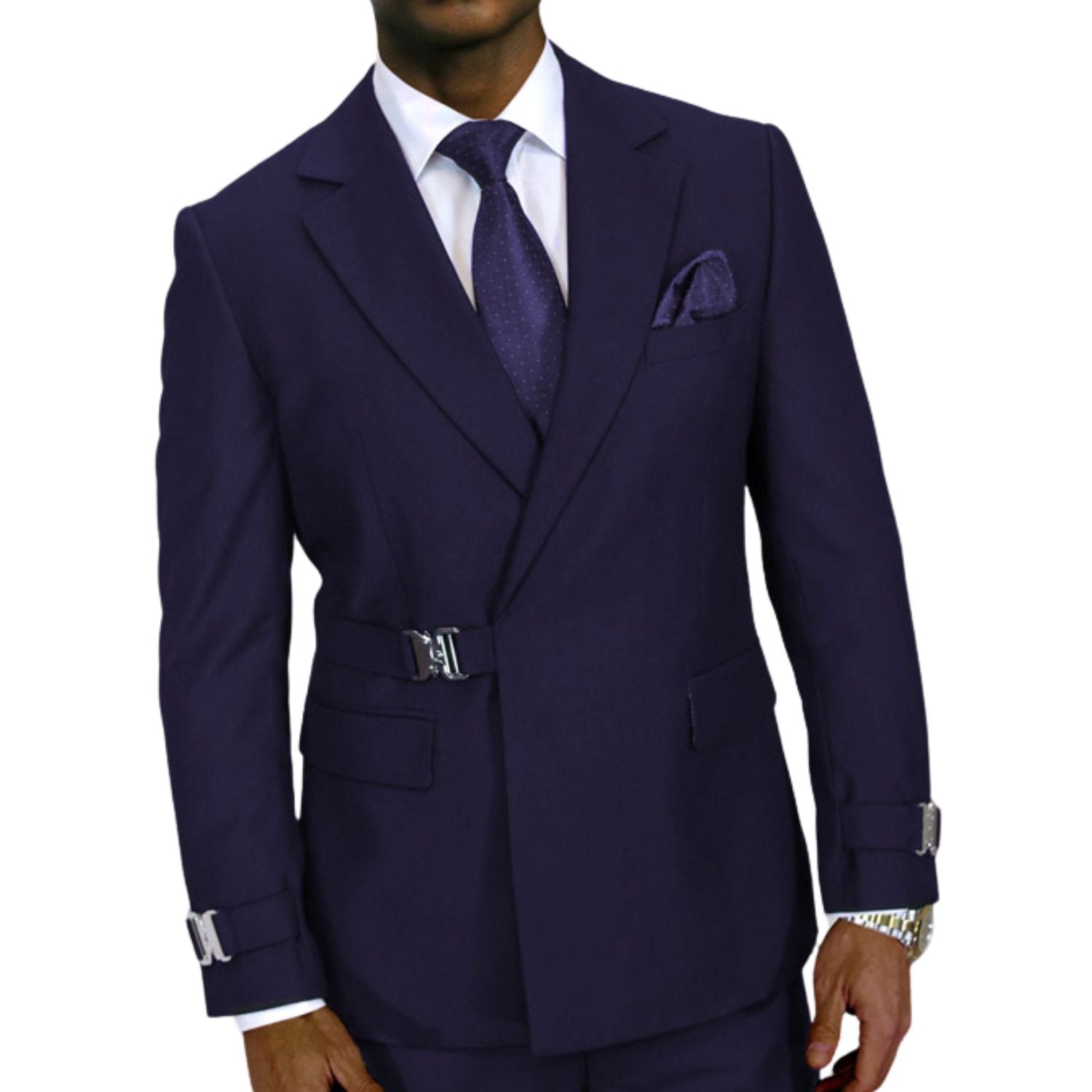 Redefine power dressing with the Aurelian Crest Collection, a bold and refined 2-piece modern fit suit crafted from luxurious Italian Super 200’s wool. The standout metal buckle closures on the jacket and cuffs add an avant-garde edge, making this Navy-colored suit a statement of confidence and style.