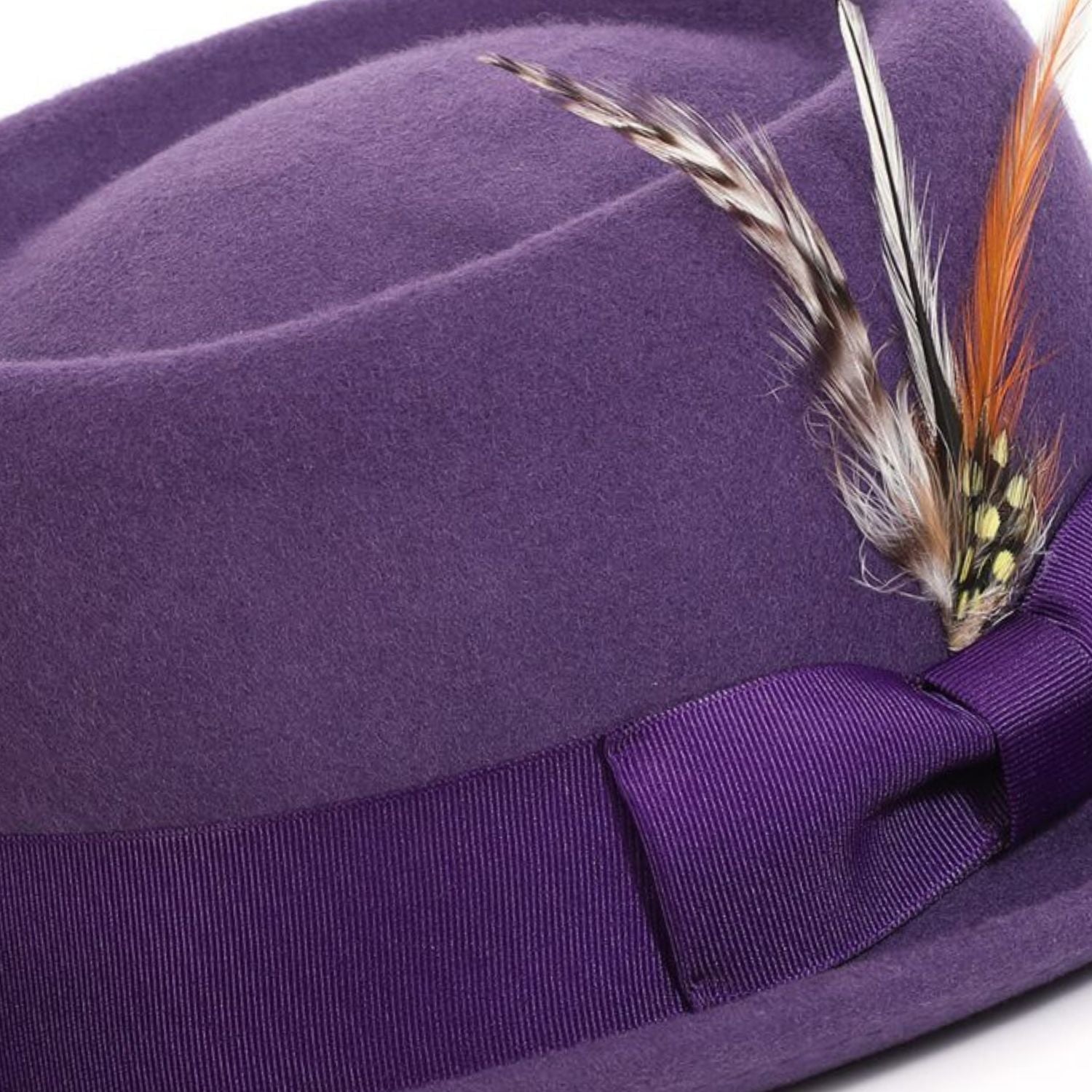 Ring Collection: Grape Pork Pie Fedora with Feather Accents