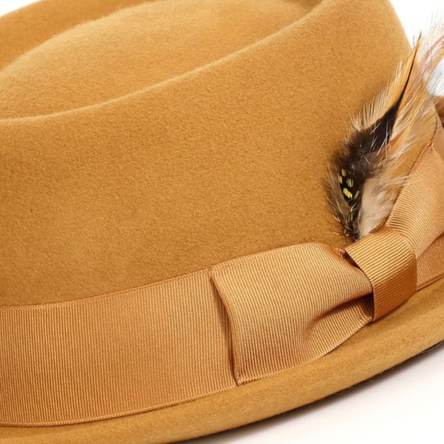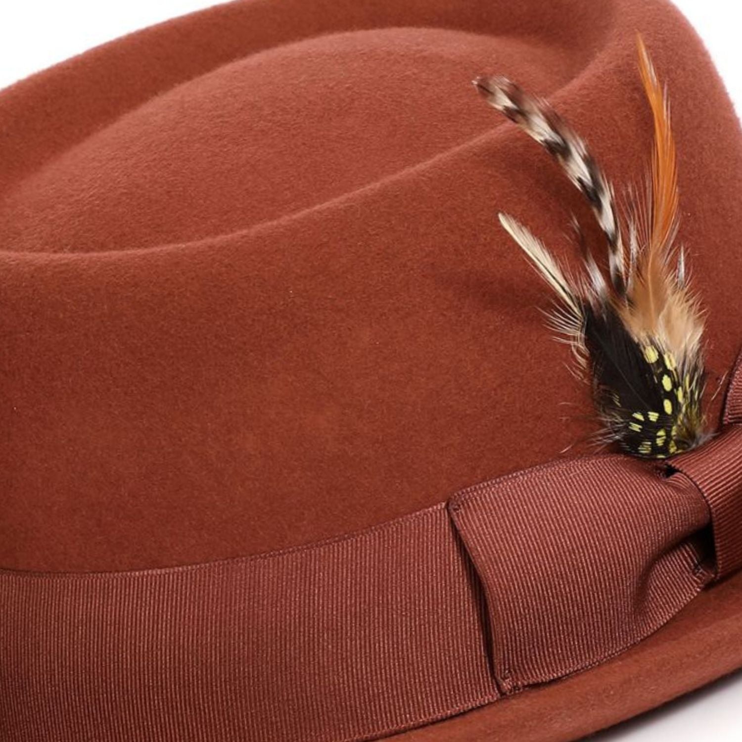 Ring Collection: Cognac Pork Pie Fedora with Feather Accents