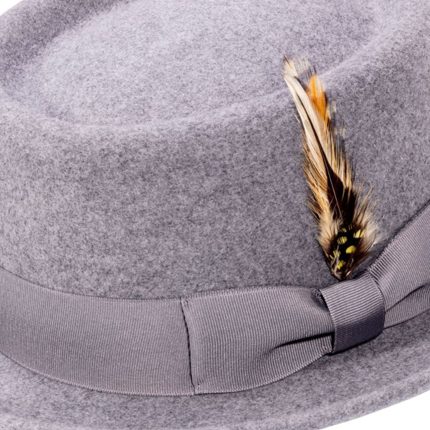Ring Collection: Grey Pork Pie Fedora with Feather Accents