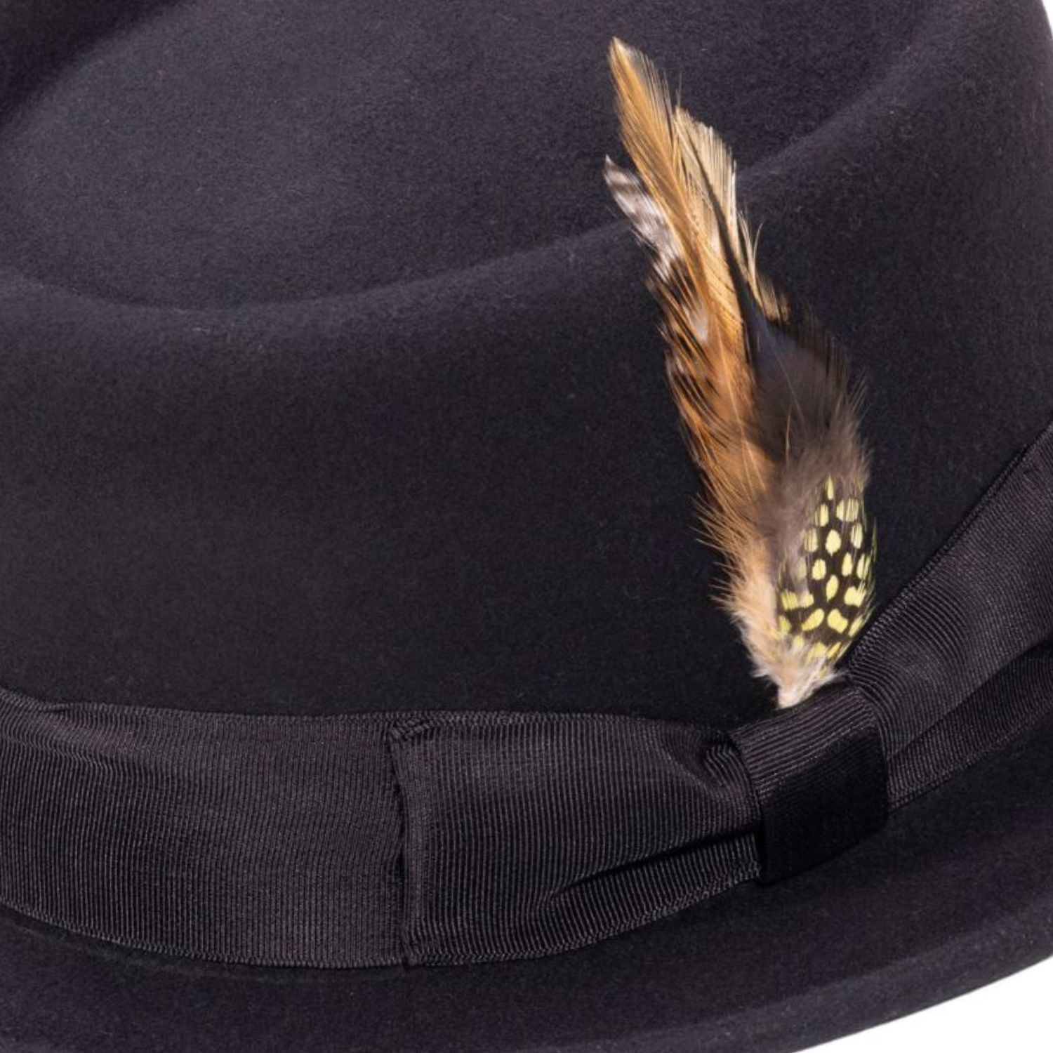 Ring Collection: Black Pork Pie Fedora with Feather Accents