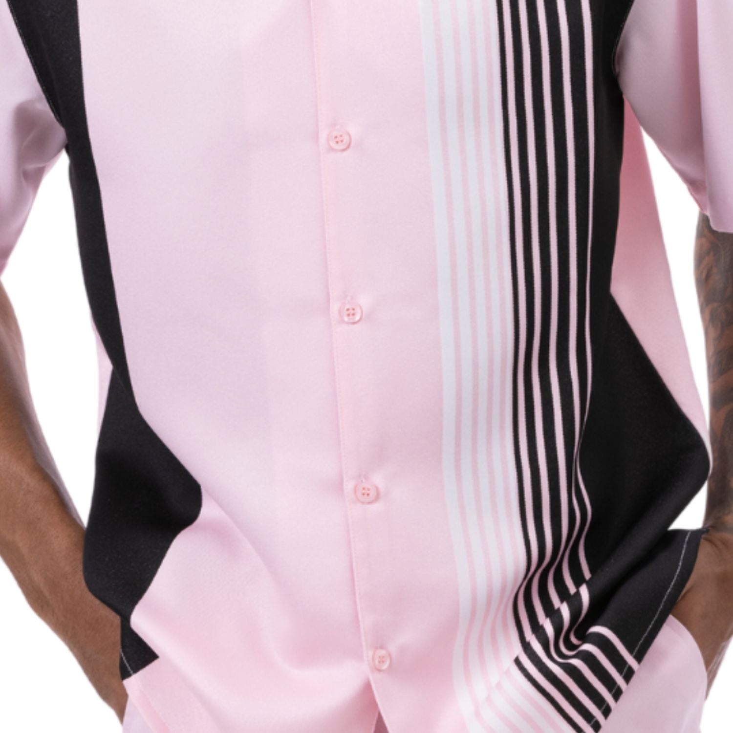 Tidal Togs Collection: Montique 2 Piece SHORTS SET Vertical Stripes in Pink Walking Suit 72322