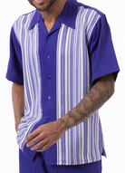 Montique Purple Striped Pattern Walking Suit 2 Piece SHORT PANTS Set 72312