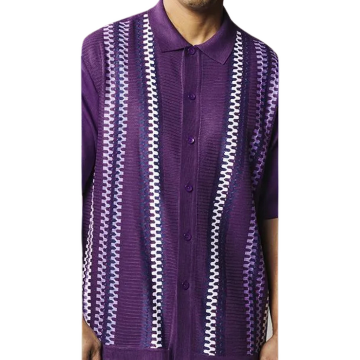 Sargas Collection: Men's Purple 2-Piece Short Sleeve Set with Geometric Pattern