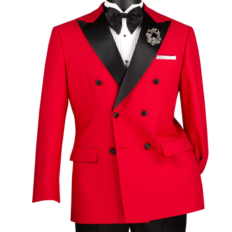 Albireo Collection: Red 2-Piece Double-Breasted Tuxedo - Modern Fit - Satin Peak Lapel