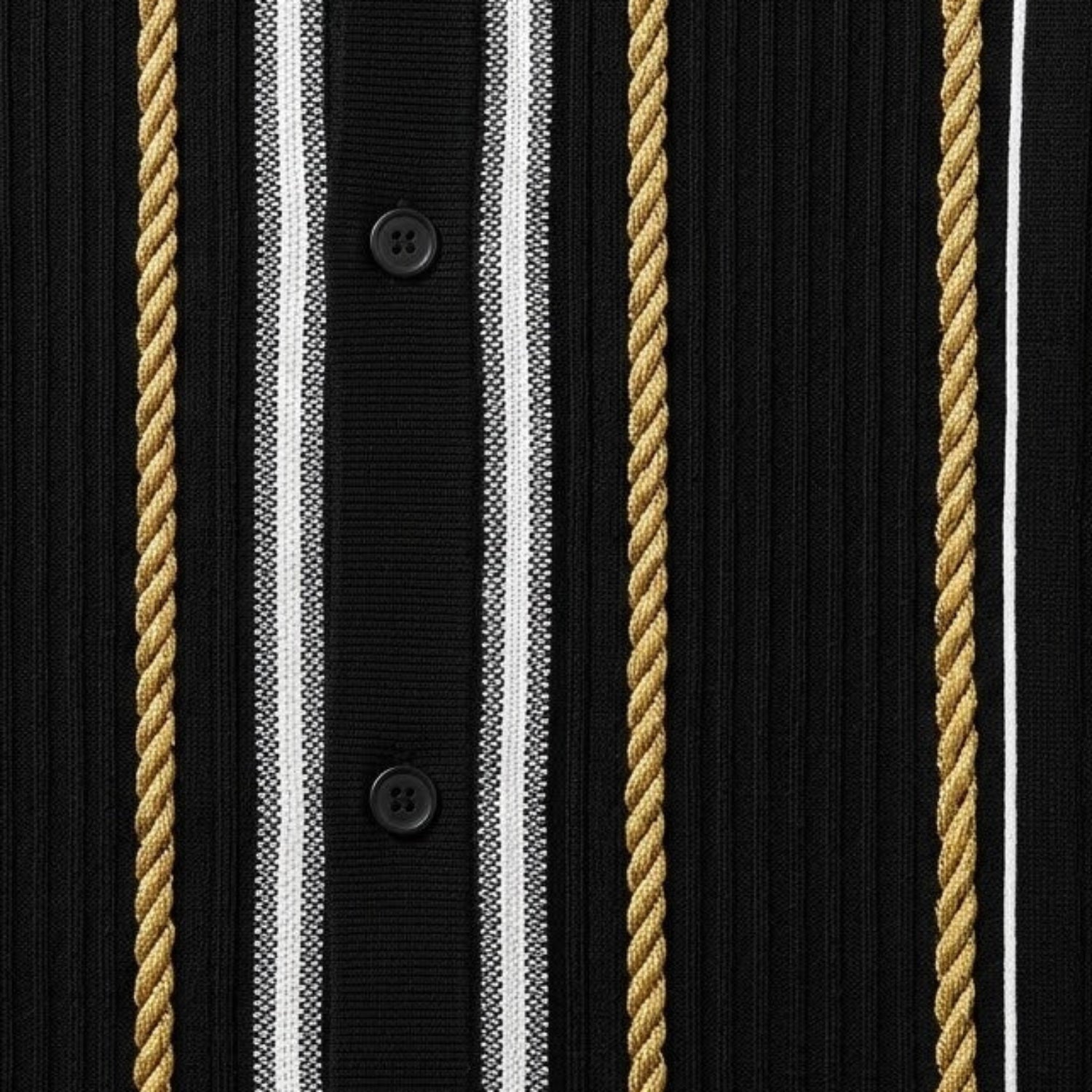Black Rope-Knit Striped Button Down Shirt by Stacy Adams