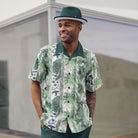 Phobos Collection: Montique's Men’s Emerald Green Botanical Print Walking Suit