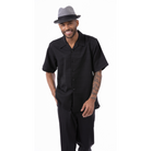 Men's 2 Piece Short Sleeve Walking Suit Tone on Tone Horizontal Stripes in Black - 2305