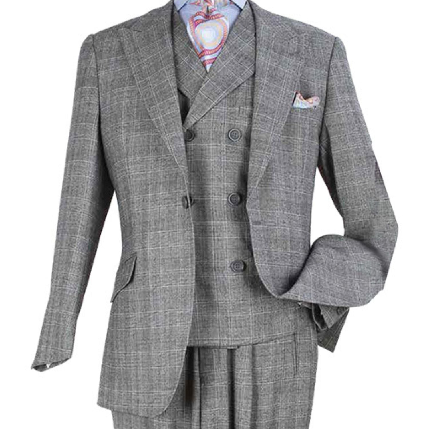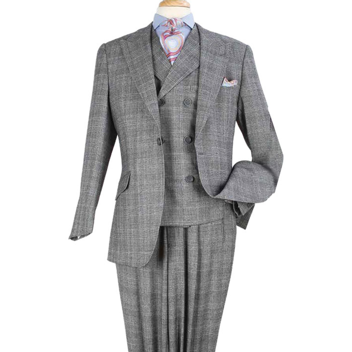 Gray Windowpane 3-Piece 100% Wool Suit Classic Fit