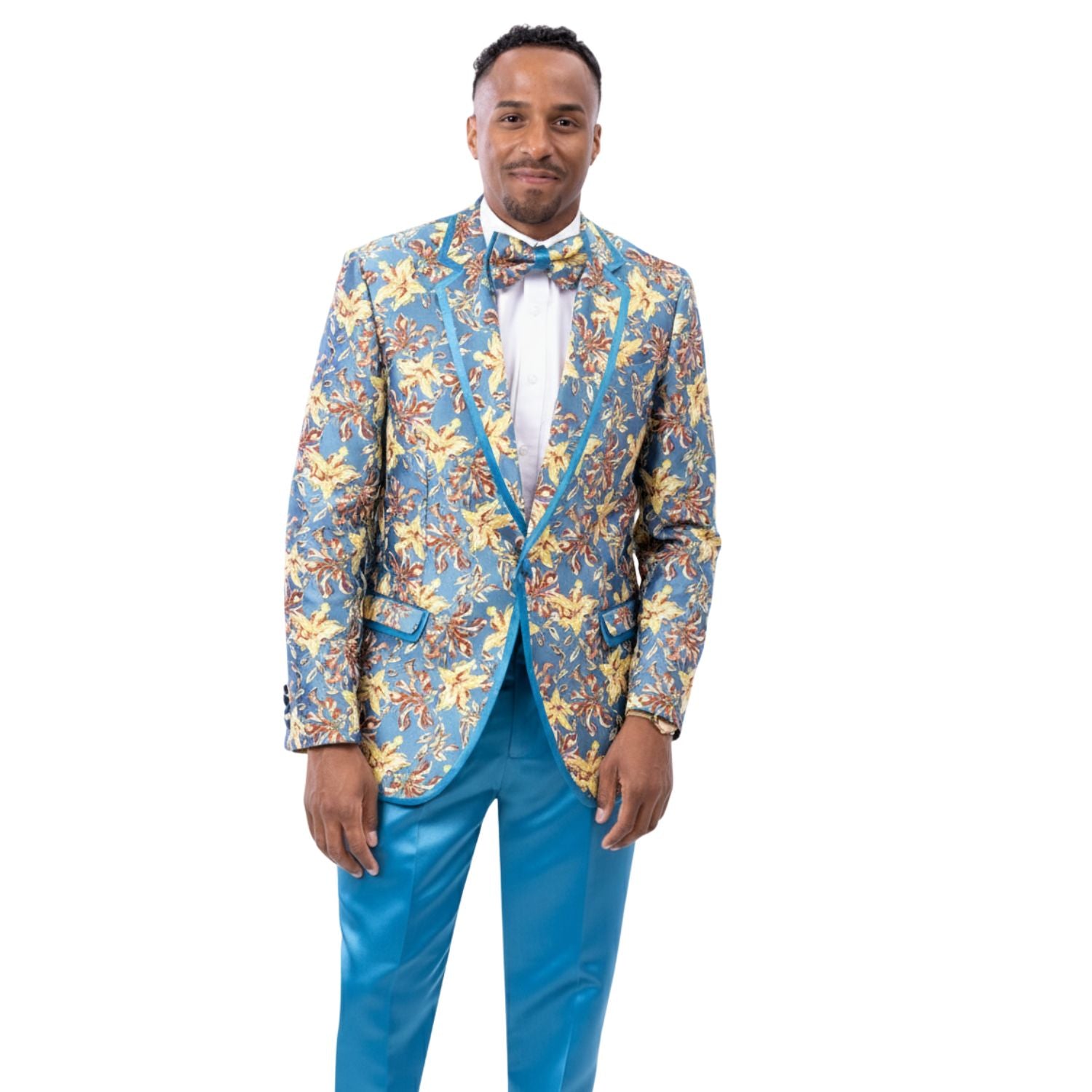 Azulora Blue 2-Piece Floral Fashion Suit with Matching Bowtie
