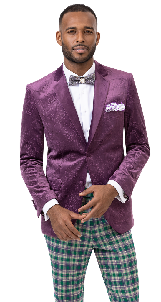 Mauve Plaid Three Piece Modern Fit Fashion Suit M2765