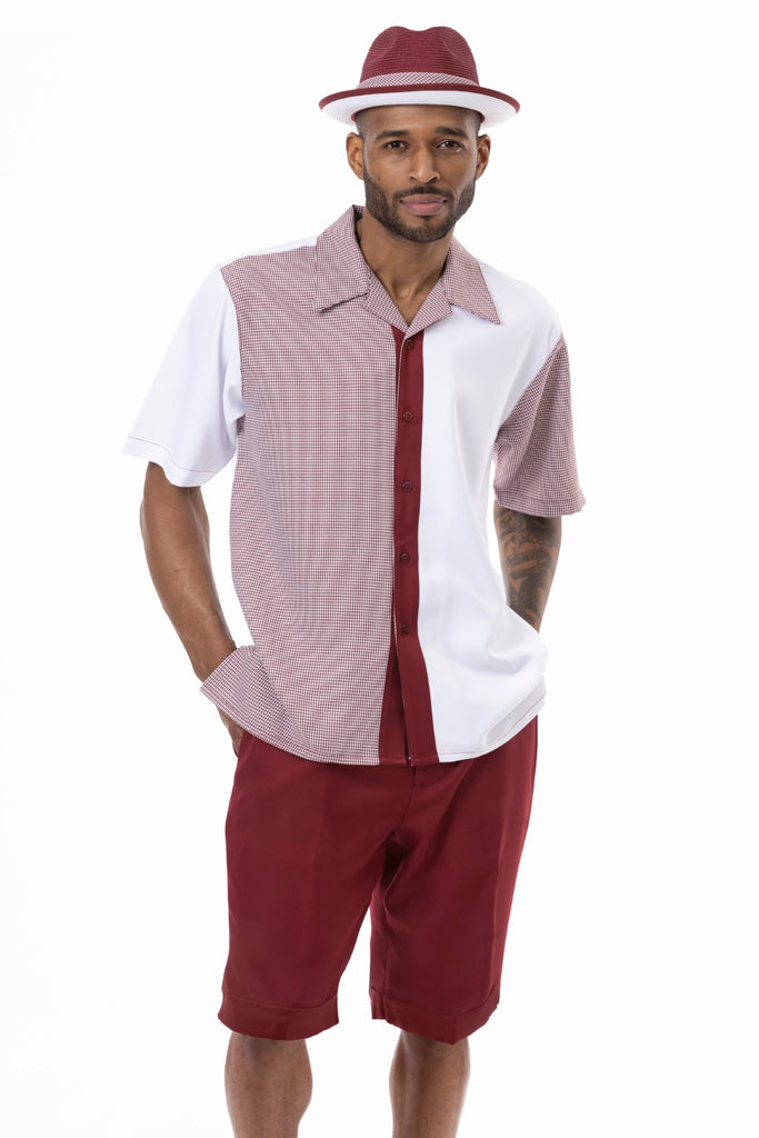 Montique Burgundy Tone On Tone Walking Suit 2 Piece SHORTS SET 72213