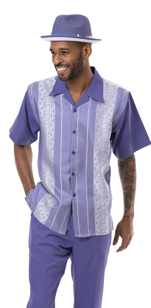 Classic Collection: Purple Walking Suit 2 Piece Solid Color Short Sleeve Set 696