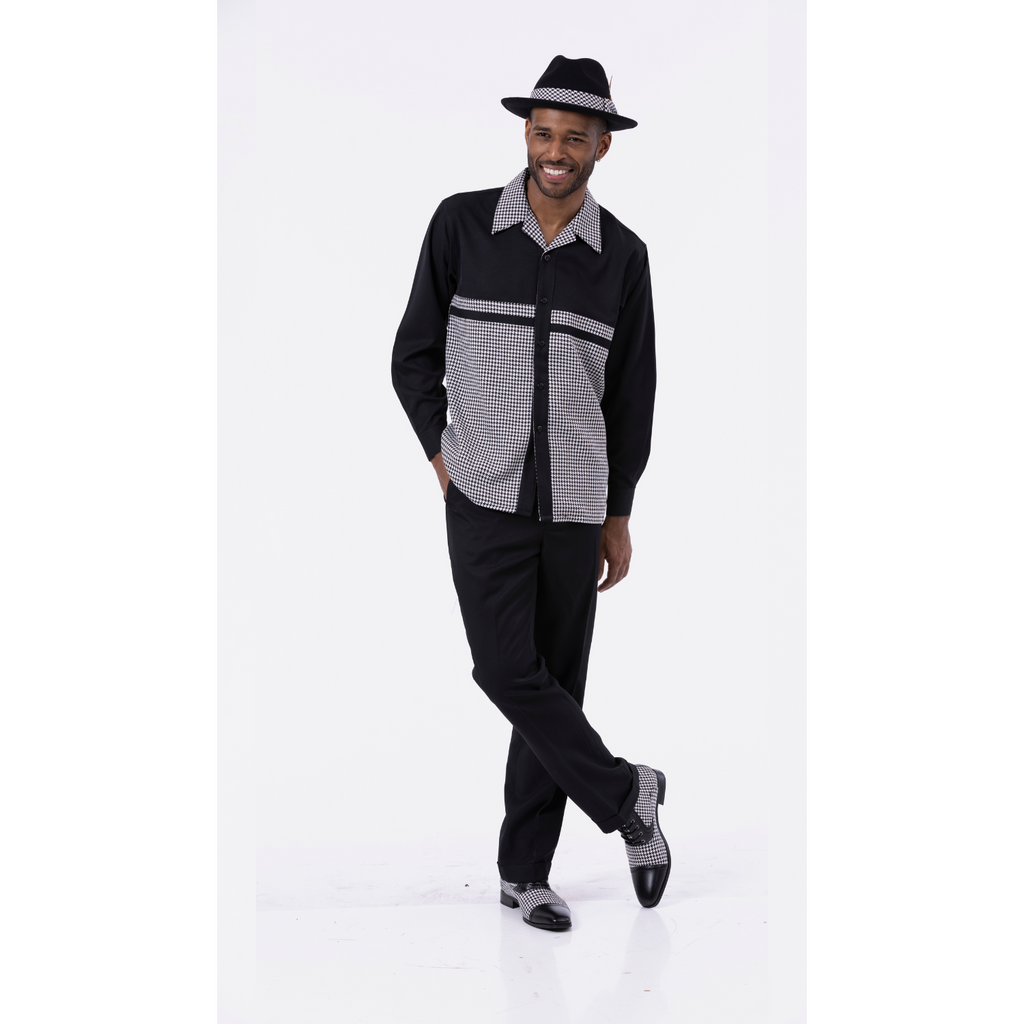Black Houndstooth Vertical Walking Suit 2 Piece SHORTS SET 72211