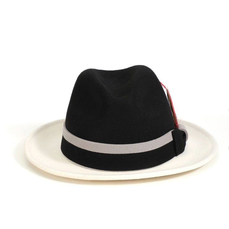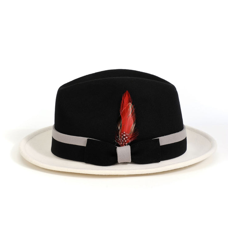 Corvus Collection: Montique Black & White Felt Fedora with Grey Band and Feather