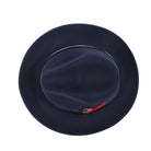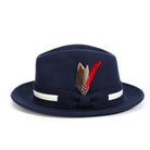 Sharp, bold, and never out of place. The Montique Navy Felt Fedora from the Sablier Collection makes an instant impression with its contrast white band and dynamic red feather accent. The soft felt finish gives it that wool richness, while the crisp crown and short brim bring just enough edge. Whether you're suiting up or styling down, this fedora brings the heat.