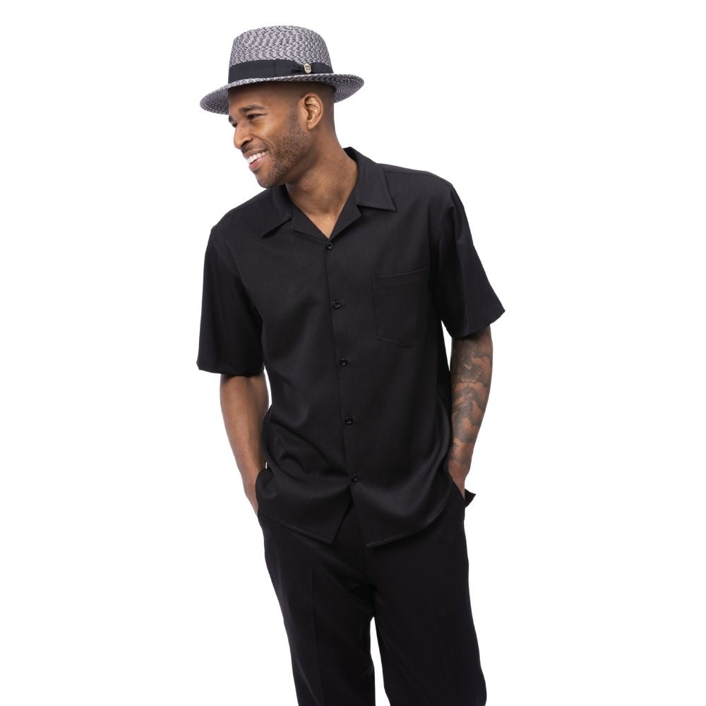 Classic Collection: Black Walking Suit 2 Piece Solid Color Short Sleeve Set 696