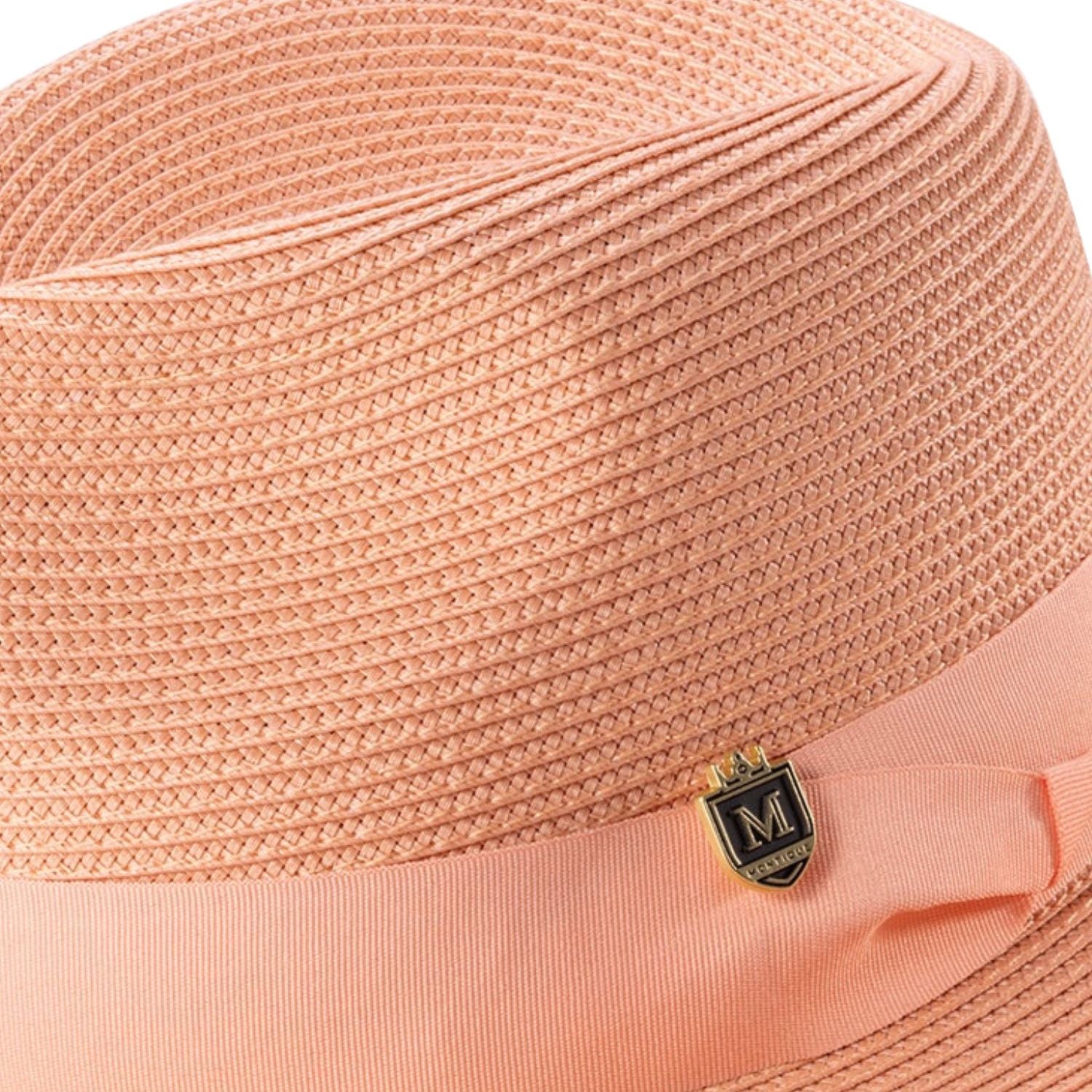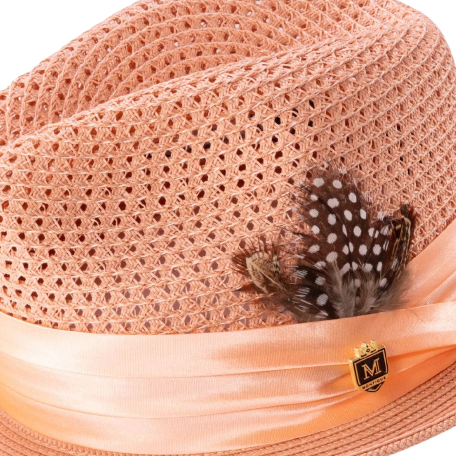 Glossaric Collection: Montique Peach Solid Color Pinch Mesh Braided Fedora With Matching Satin Ribbon Hat
