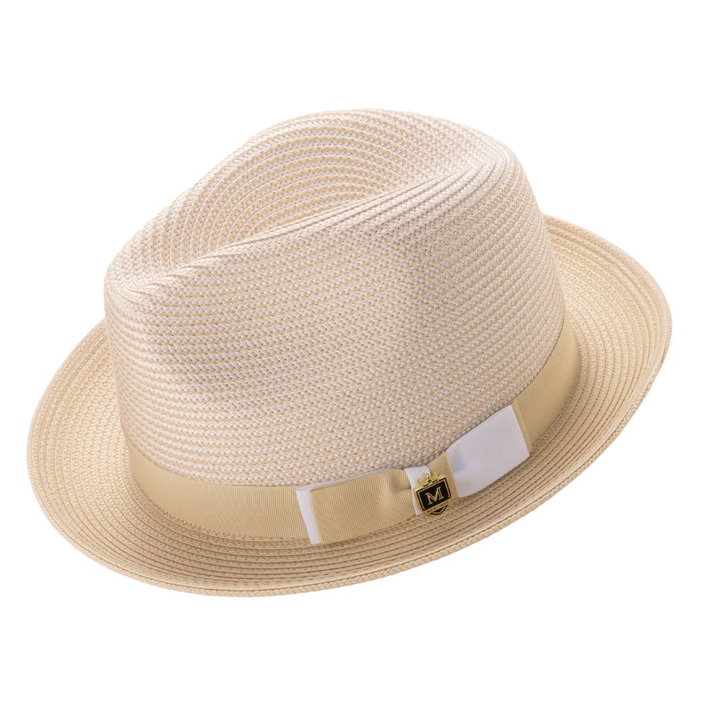 Rubique Collection: Montique Men's Braided Two Tone Stingy Brim Pinch Fedora Hat in Beige